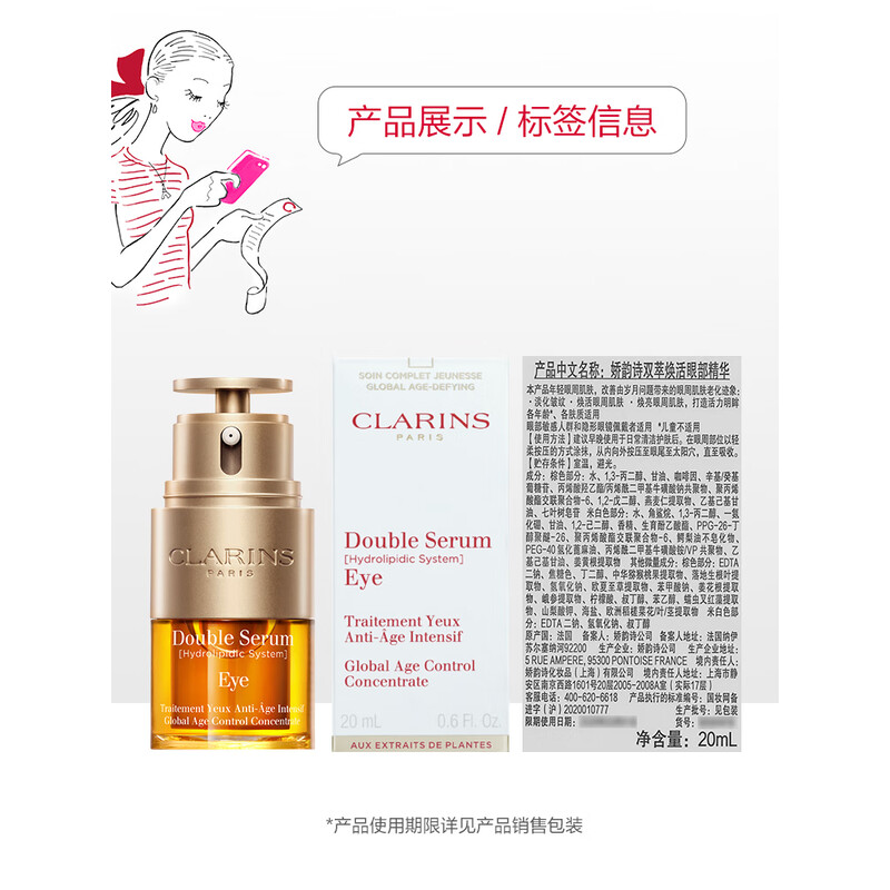 娇韵诗双萃精华眼霜20ml维稳滋润淡眼纹礼物送女友
