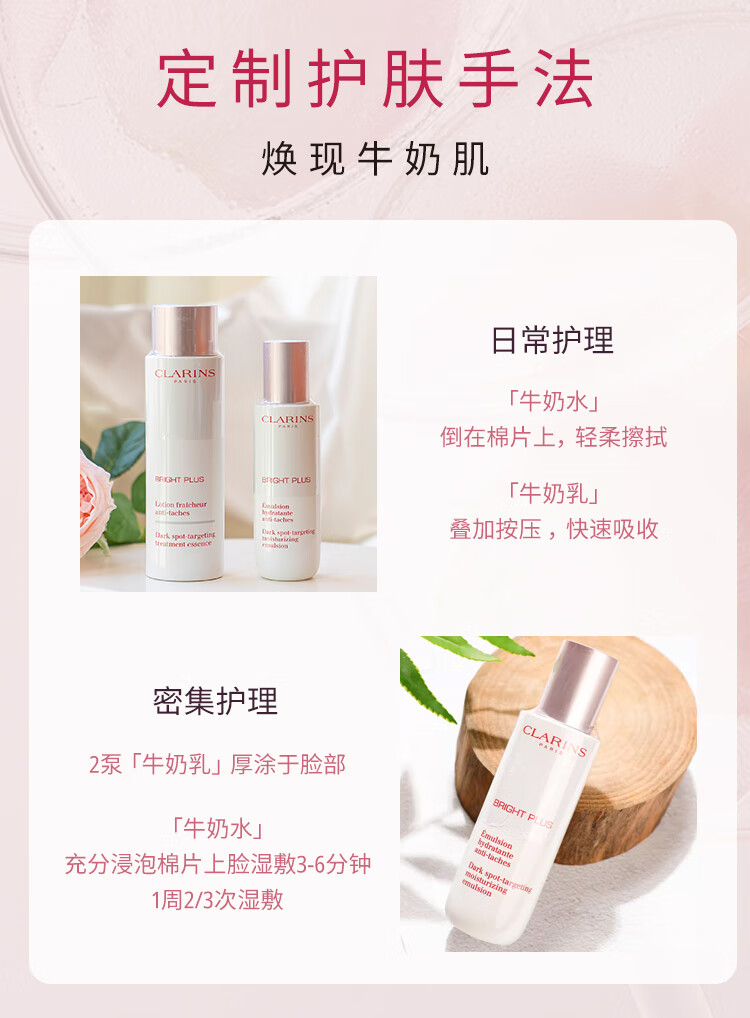 Clarins/娇韵诗 娇韵诗美白牛奶水乳套装光芒小瓷瓶三件套