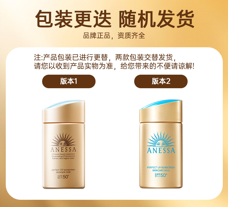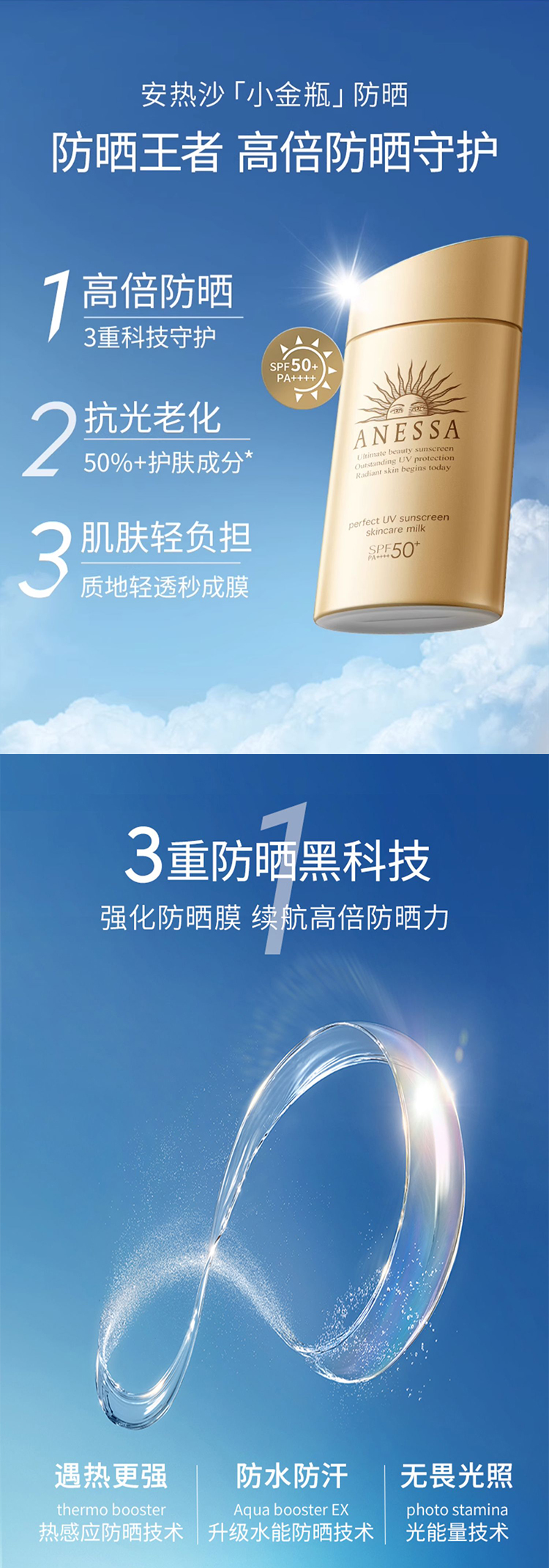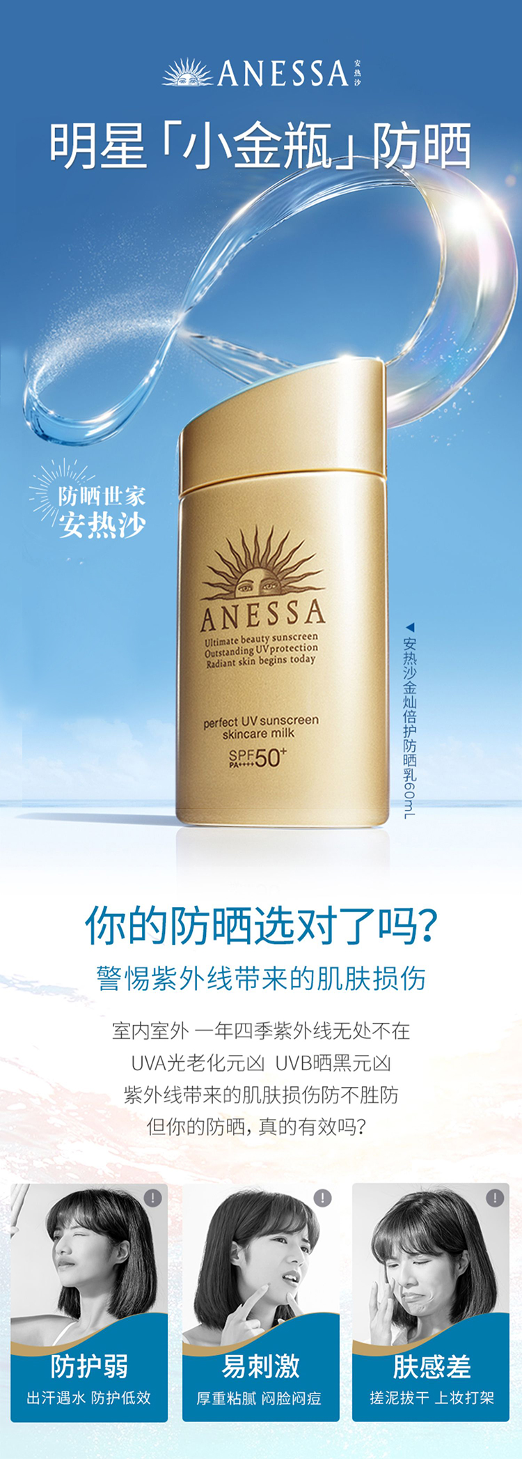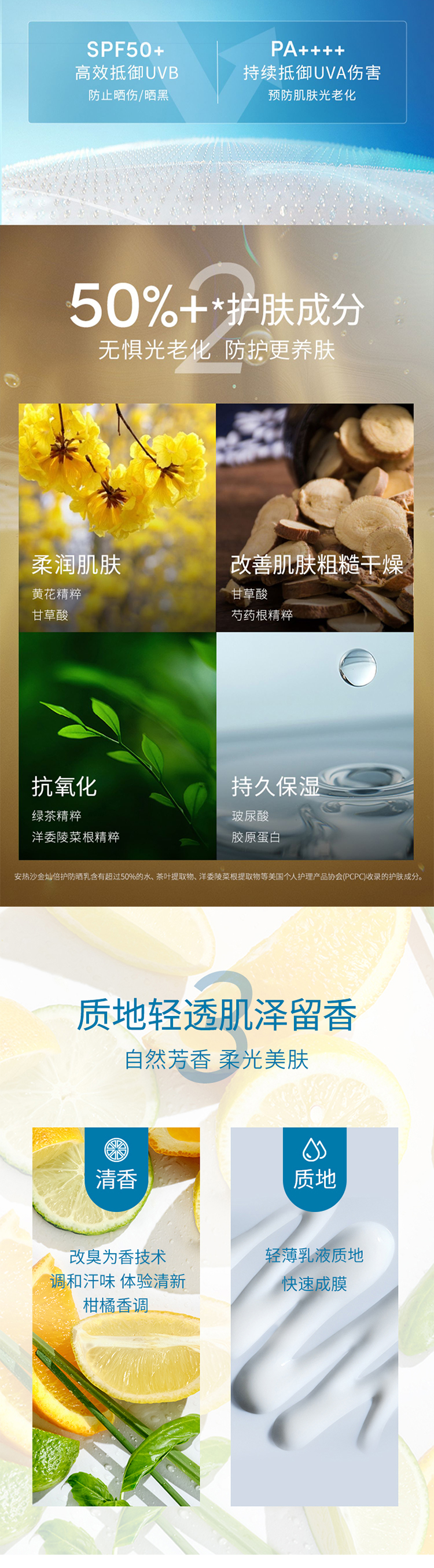 安热沙金灿倍护防晒乳 SPF50+ PA++++ 60ml质地清爽不油腻
