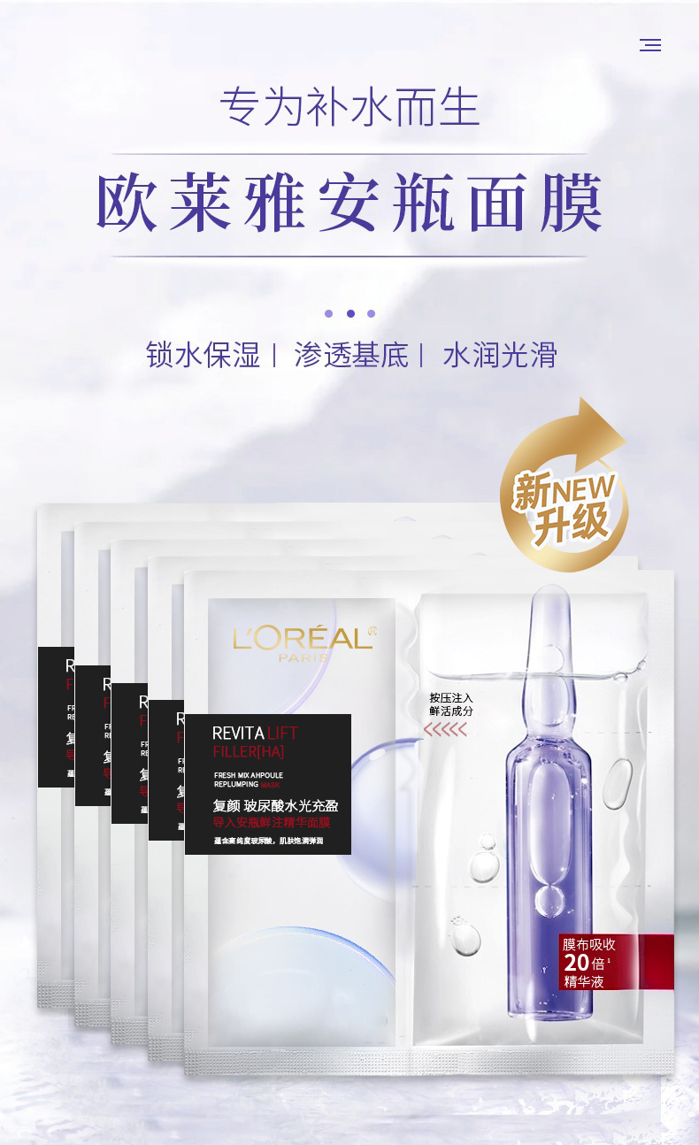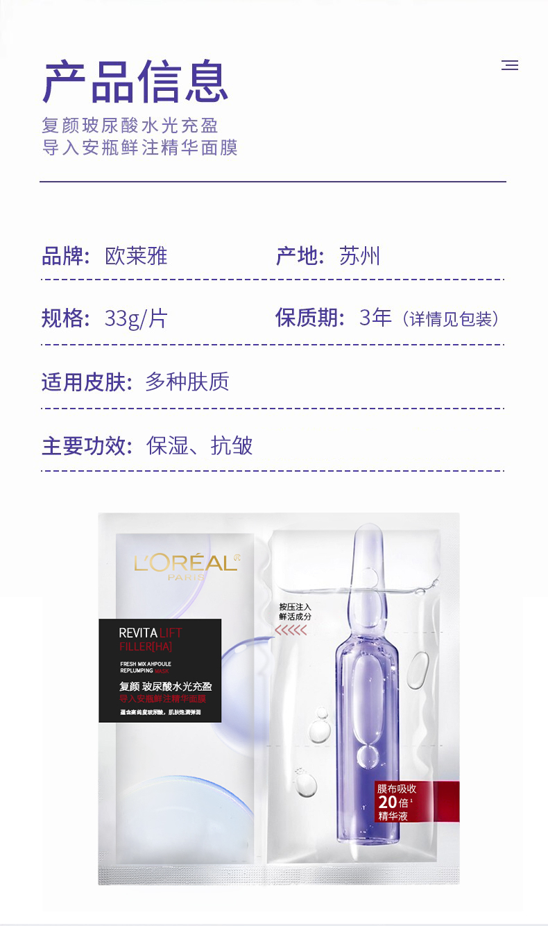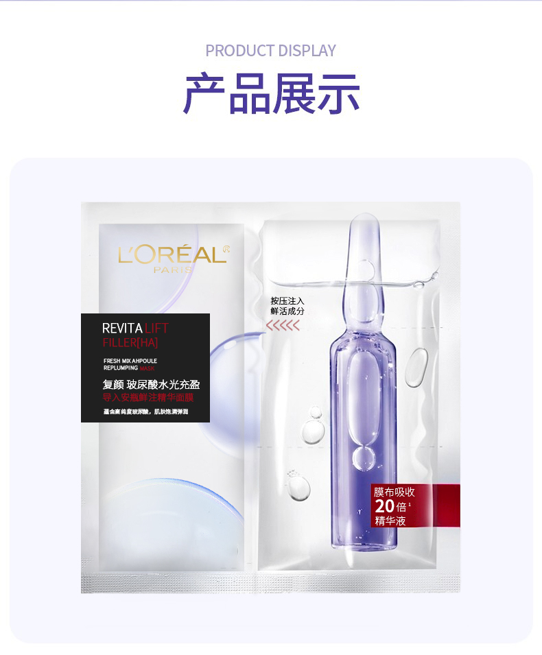 欧莱雅复颜玻尿酸导入安瓶鲜注精华面膜