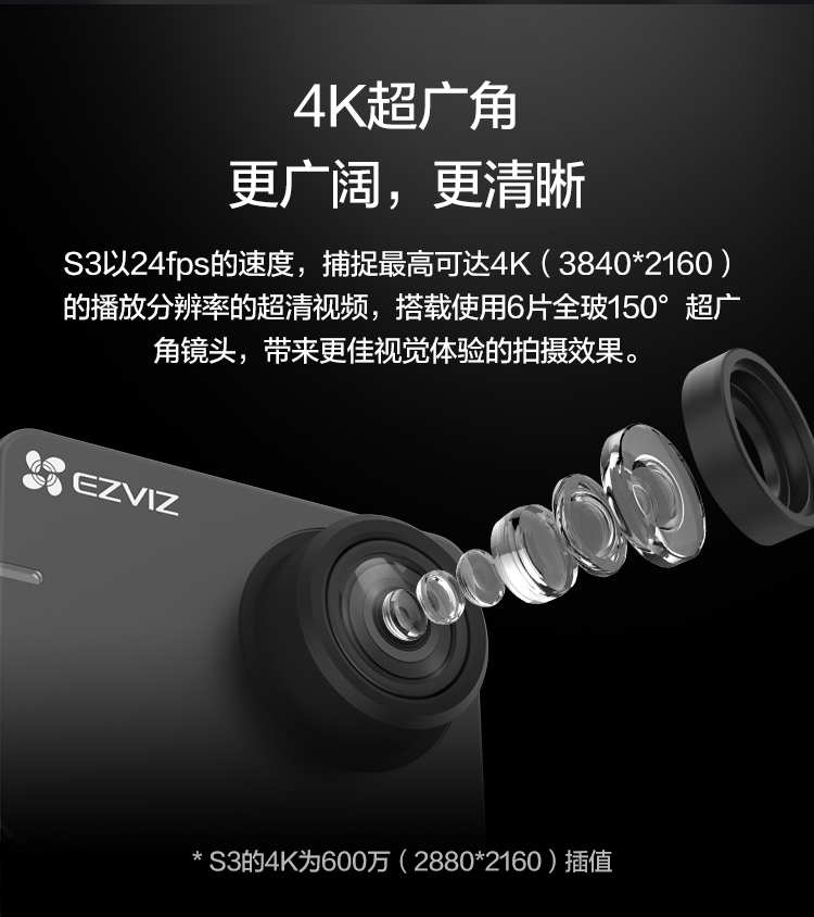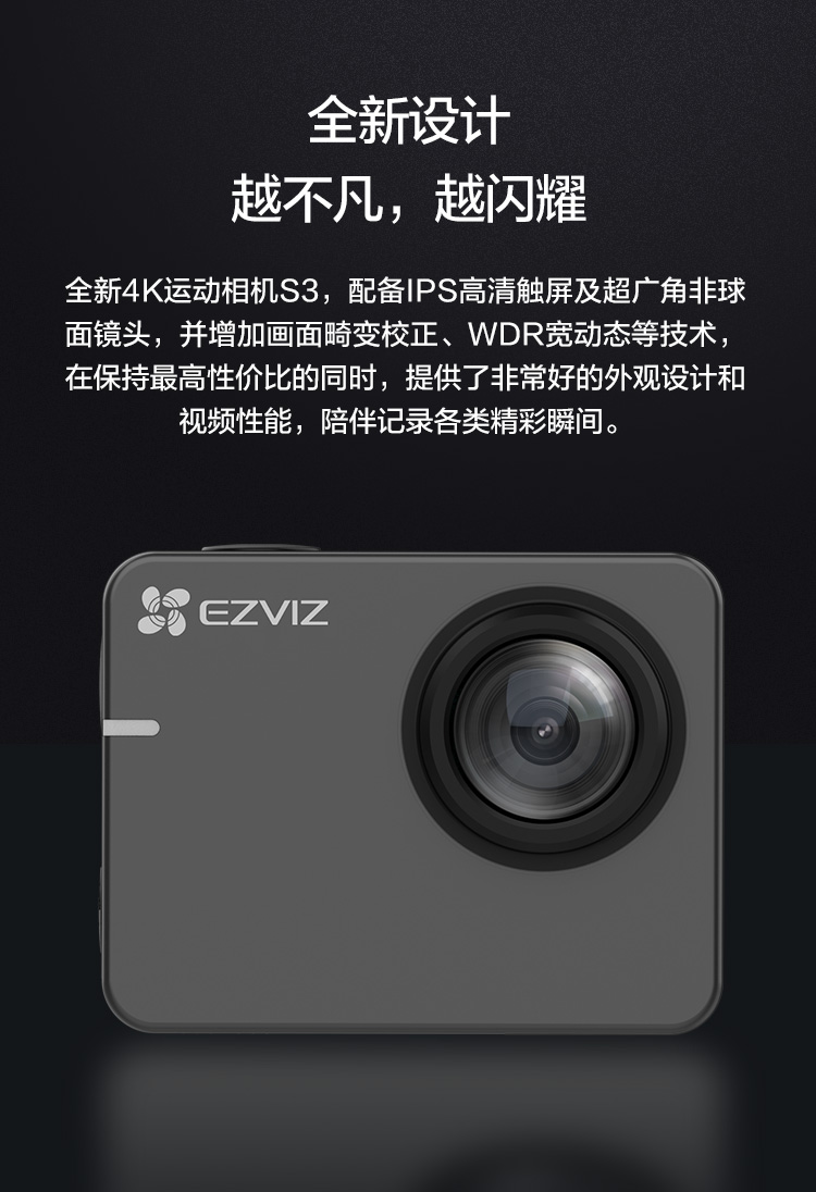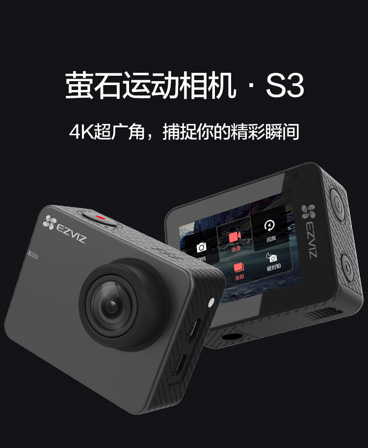 首页 >> 萤石S3运动相机 4K超广角 超清防抖 海康威视旗下 户外摩托骑行滑雪防水记录 摄像机 Vlog便携相机 标配无卡