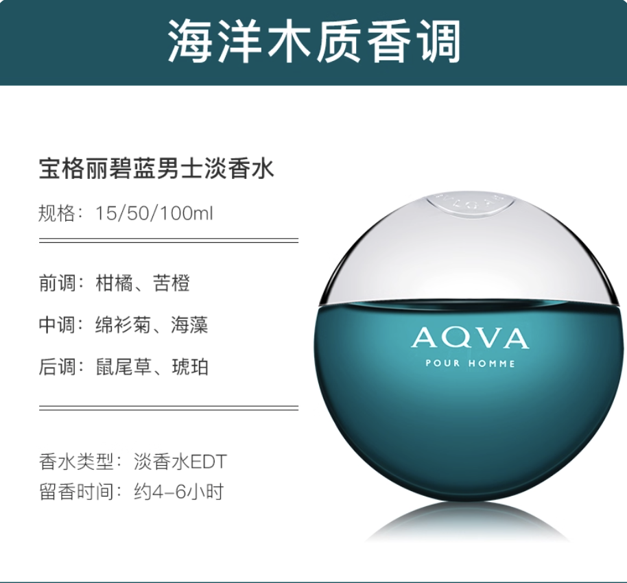 Bvlgari宝格丽aqva碧蓝男士淡香水香氛50/100ml
