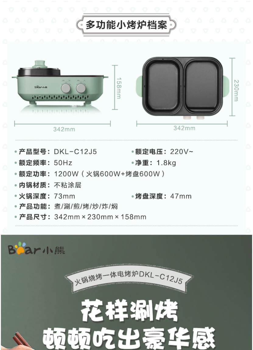 首页 >> 小熊 涮烤一体锅 DKL-C12J5