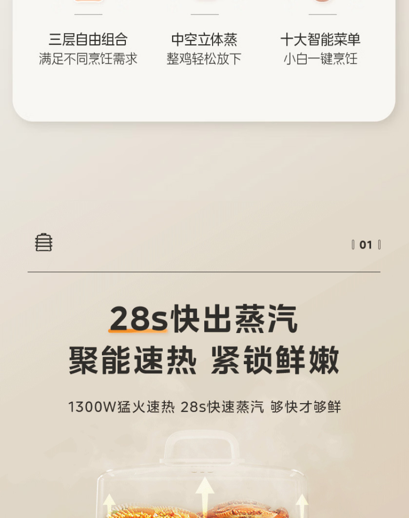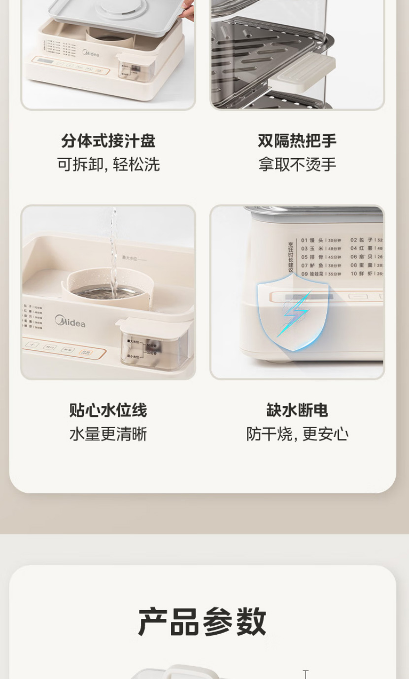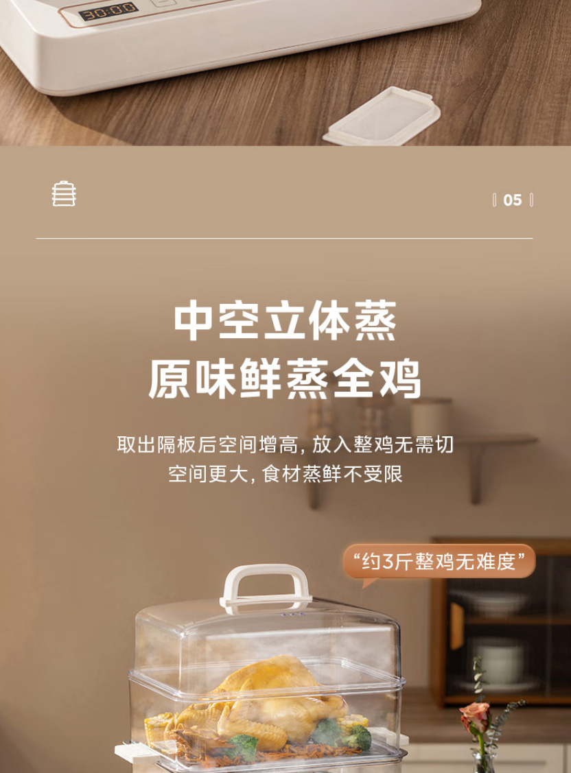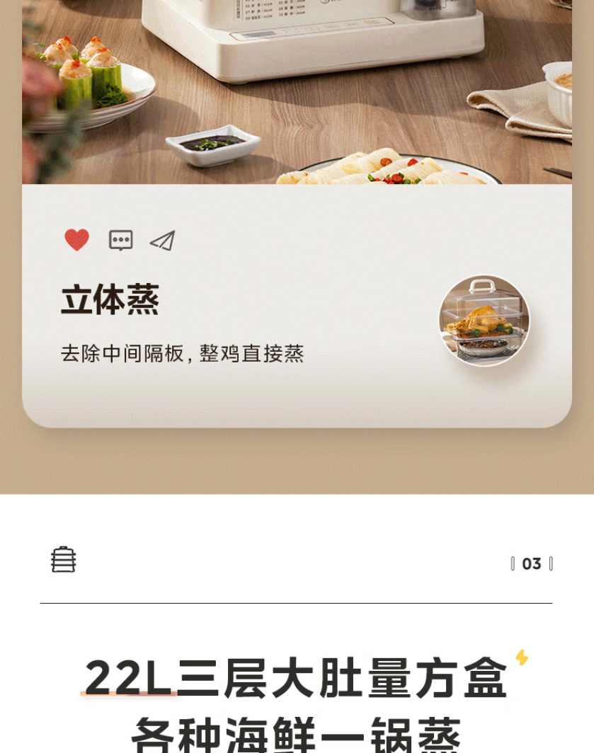 首页 >> 美的(Midea)电蒸锅 22L三层大容量外置加水蒸锅电蒸锅 透明视窗不锈钢蒸片多用途蒸包子锅多功能锅ZGC322301