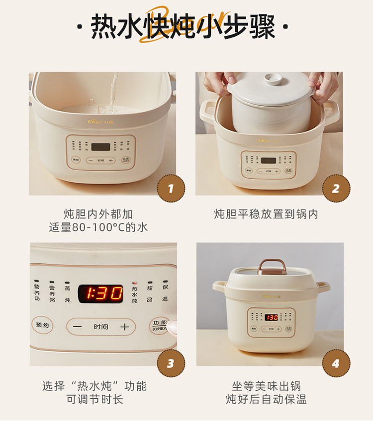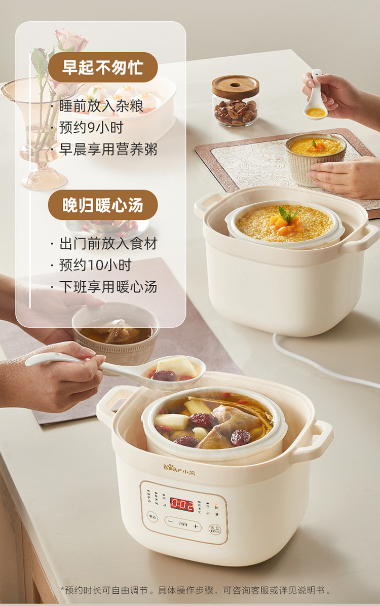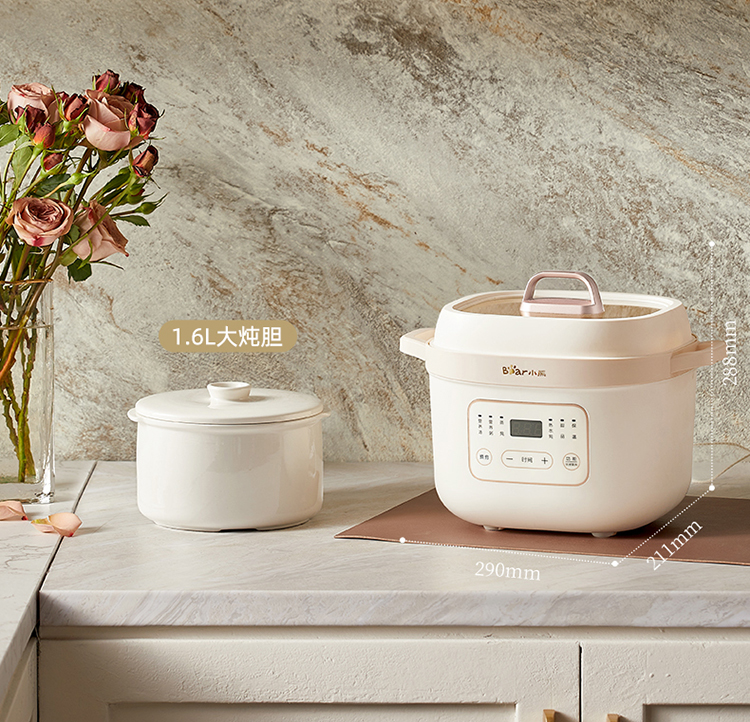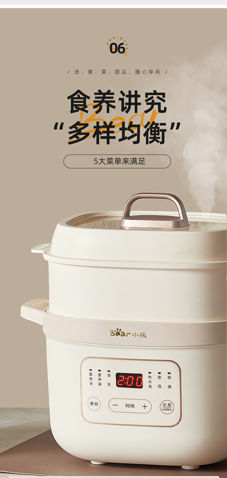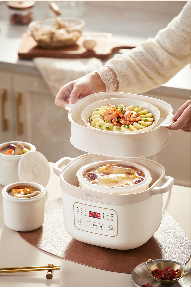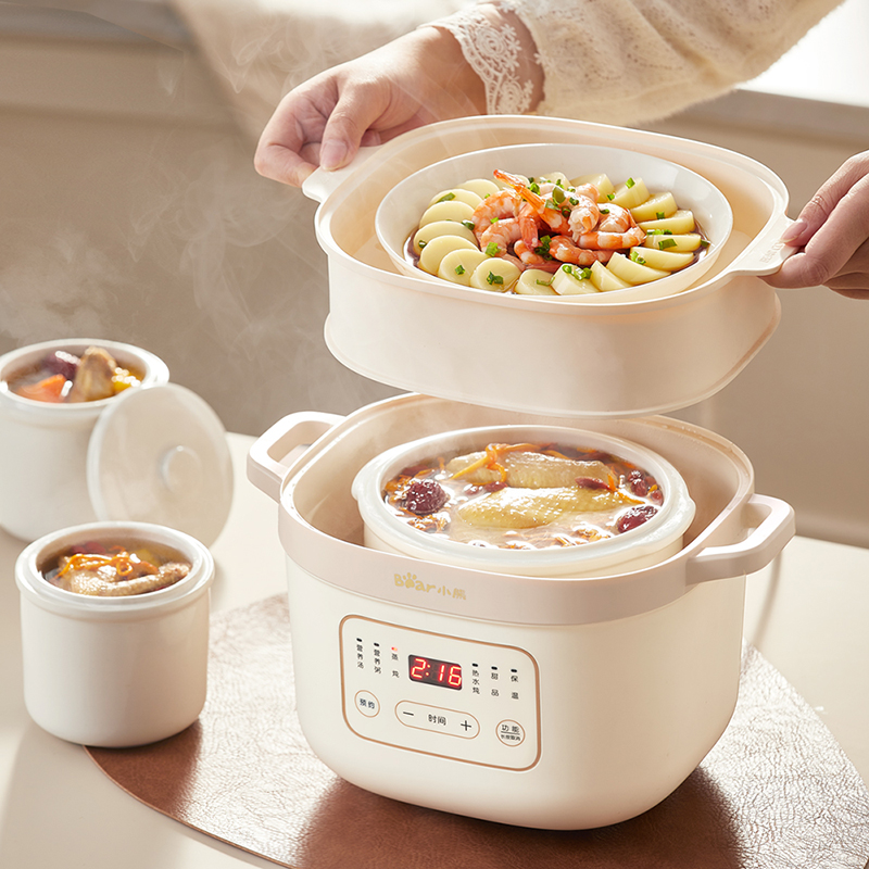 首页 >> 小熊(Bear)电炖锅 电炖盅 隔水炖锅 煲汤锅 炖汤盅 蒸锅 婴儿辅食锅煮粥锅燕窝可预约带蒸笼DDZ-D16C1 1.6L