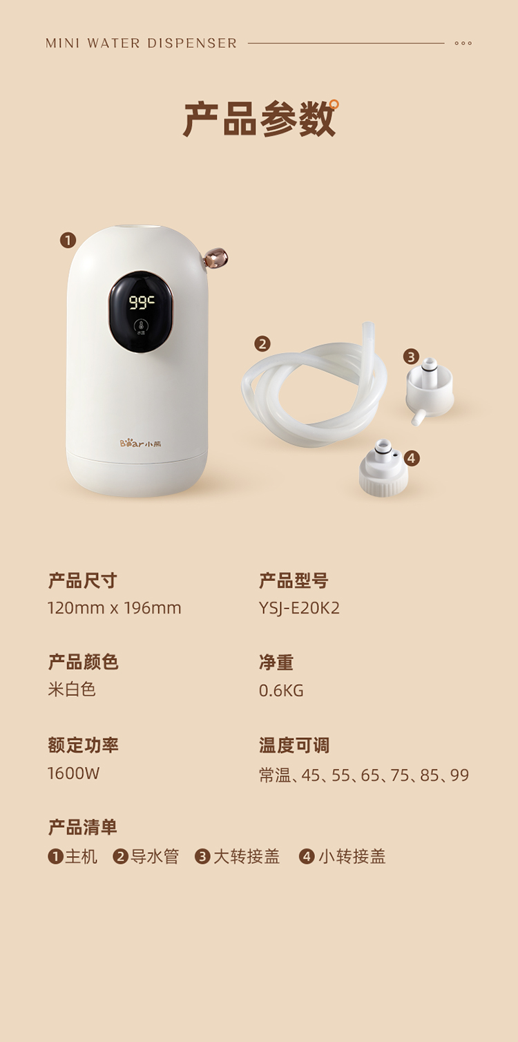 首页 >> 小熊(Bear)即热式饮水机迷你速热便携式烧水壶桌面台面家用小型桶装水抽水器旅行便携即热饮水机YSJ-E20K2