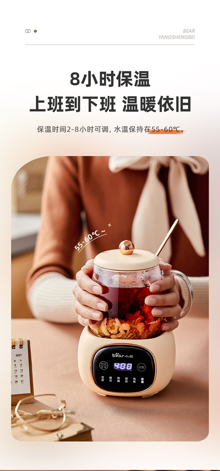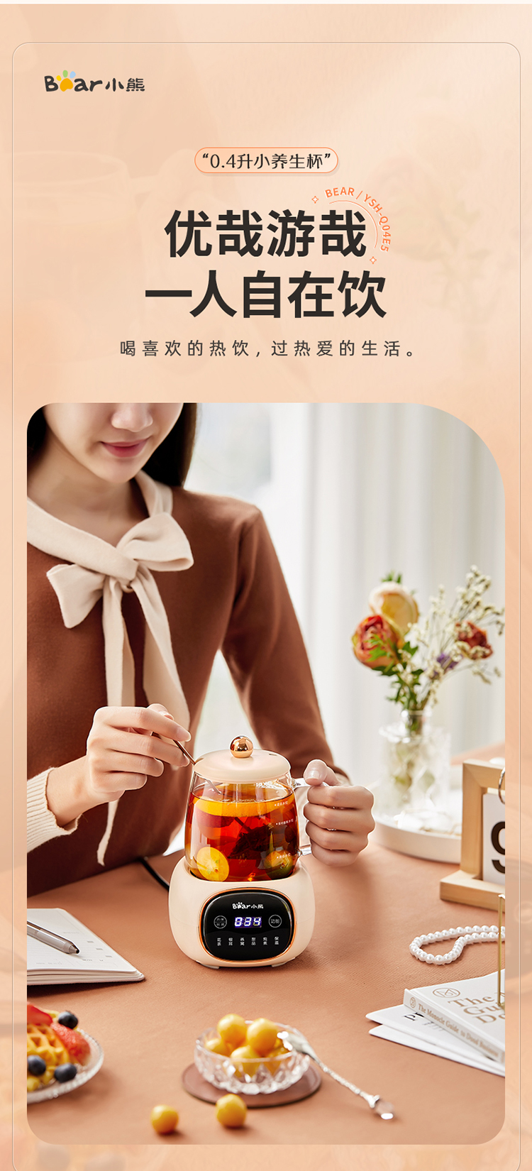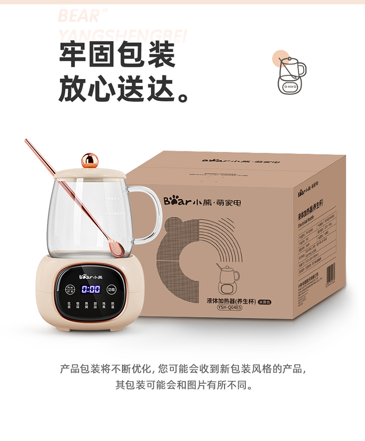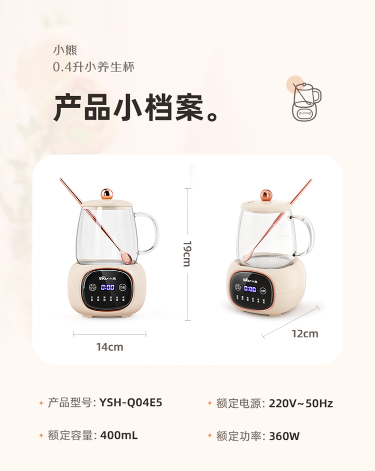 小熊(Bear)养生壶迷你养生杯 办公室家用加热杯垫 小型分体式煮茶壶煮茶器烧水壶电热水壶玻璃花茶壶 YSH-Q04E5