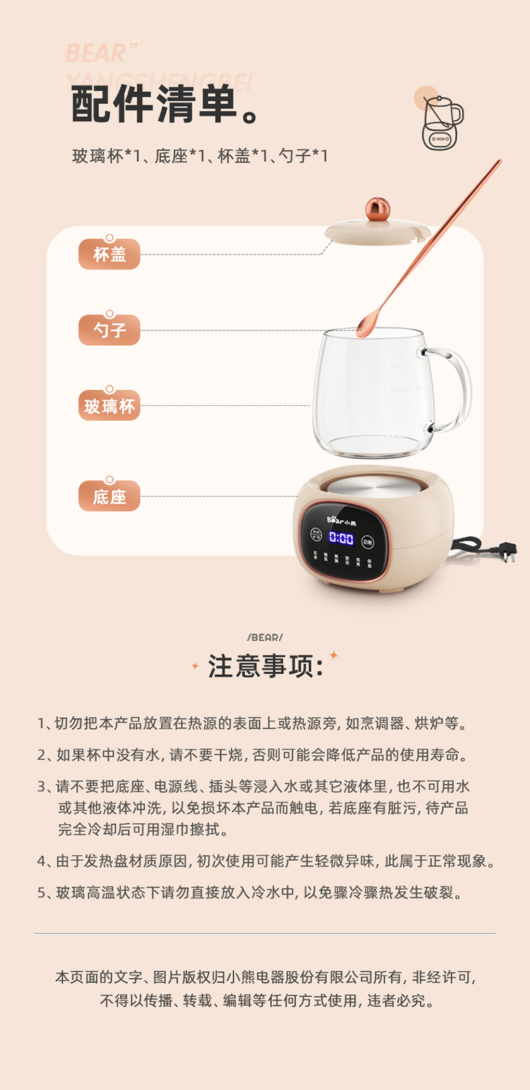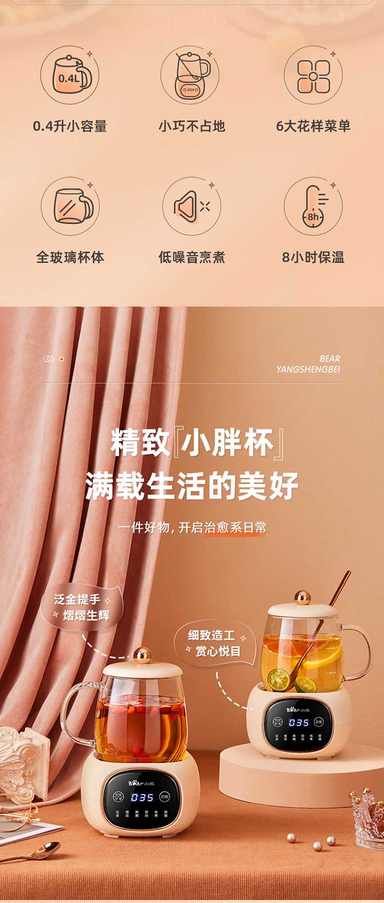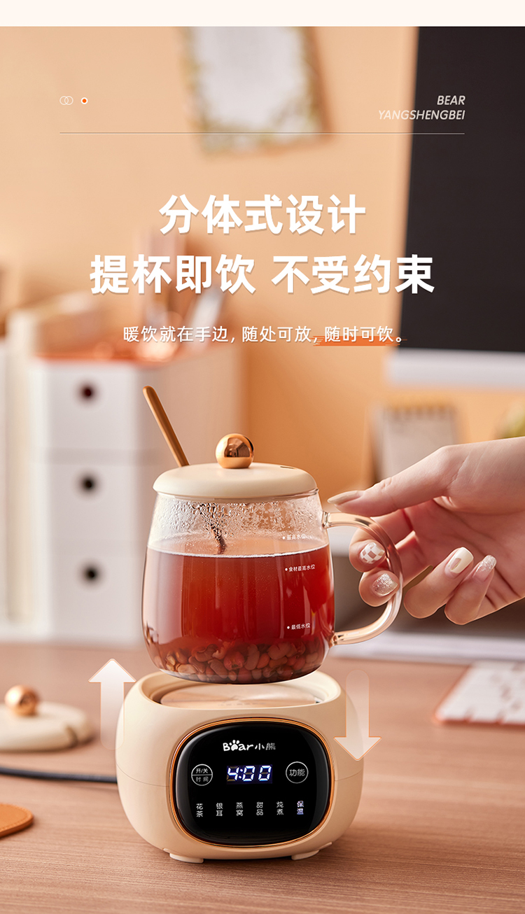 首页 >> 小熊(Bear)养生壶迷你养生杯 办公室家用加热杯垫 小型分体式煮茶壶煮茶器烧水壶电热水壶玻璃花茶壶 YSH-Q04E5