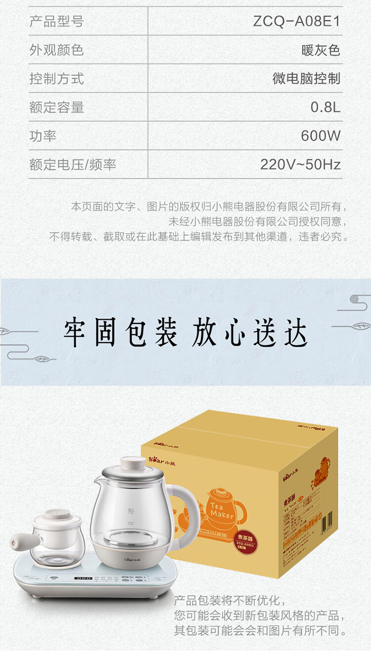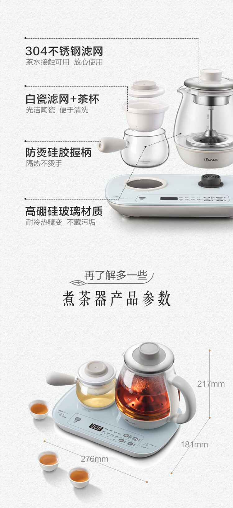 首页 >> 小熊(Bear)养生壶多功能烧水热水壶中药锅炖煮一体机办公室全自动恒温花茶煮茶器ZCQ-A08E1 煮茶保温一体 0.8L