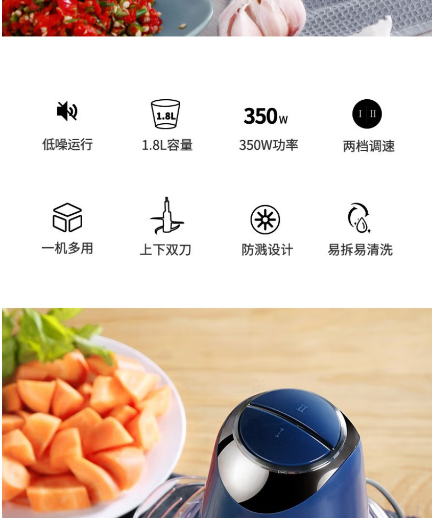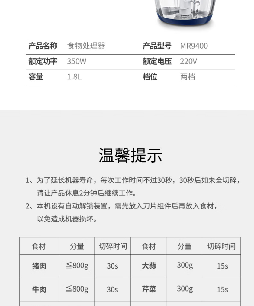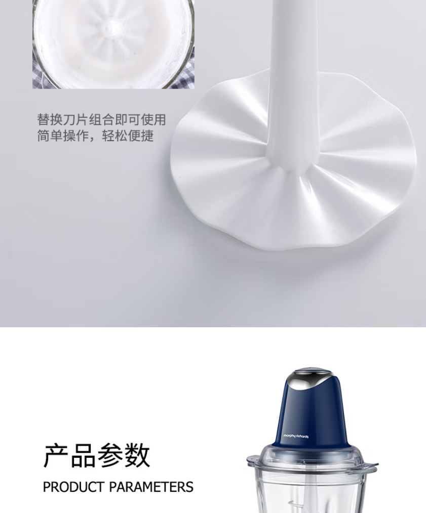 首页 >> 摩飞电器(Morphyrichards)绞肉机家用电动辅食料理机打蛋机倒蒜机碎肉机 MR9400