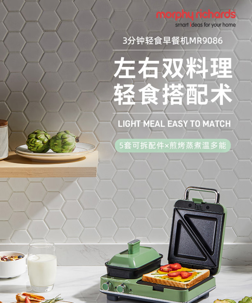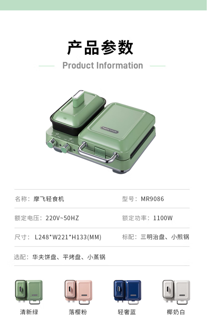 首页 >> 摩飞电器(Morphyrichards)早餐机多功能电饼铛三明治机华夫饼机 MR9086