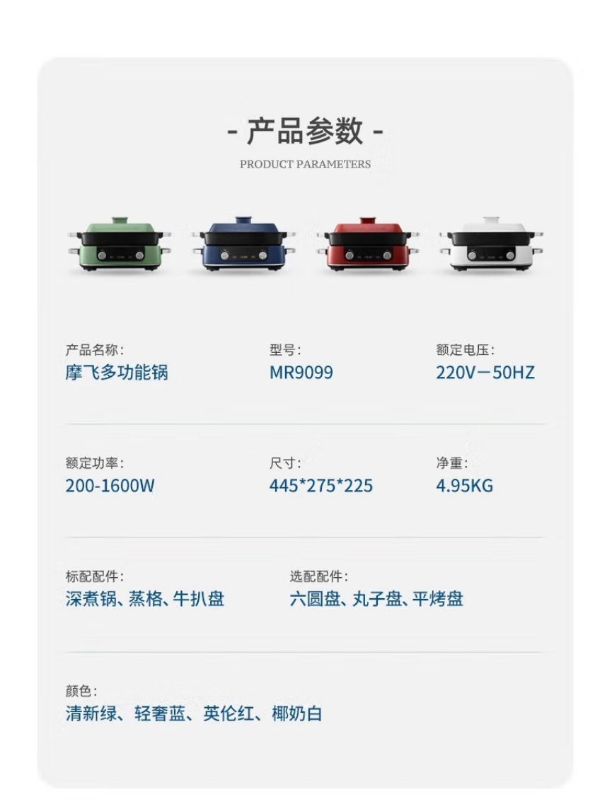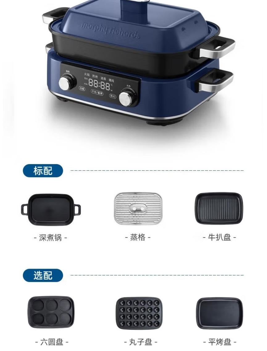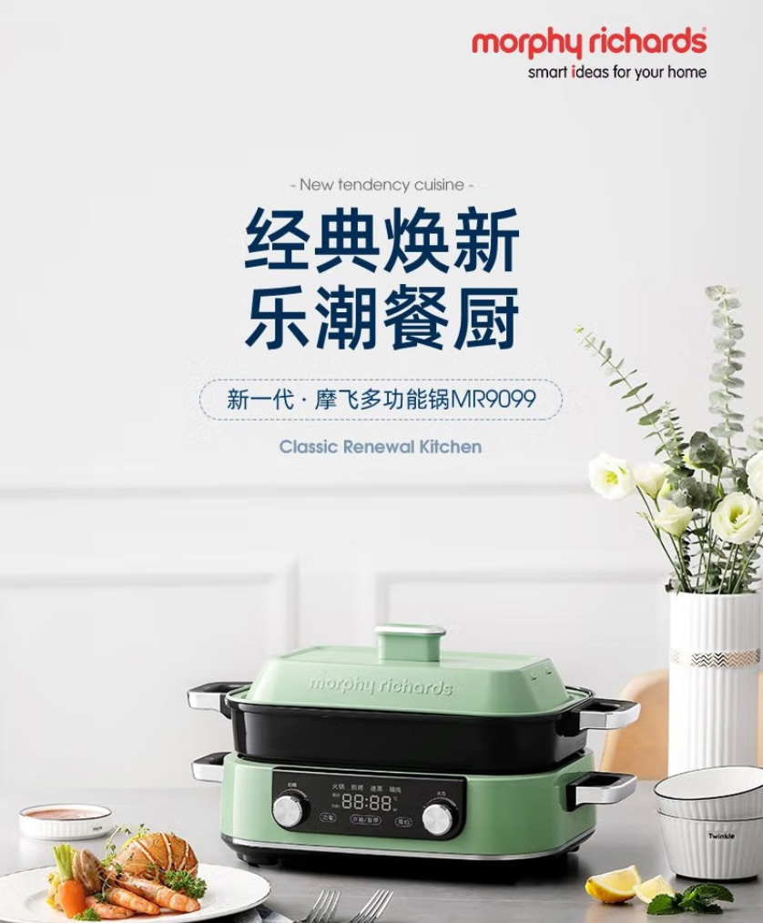 首页 >> 摩飞电器(Morphyrichards)二代多功能锅多用途料理锅电火锅电烧烤肉锅 涮蒸煮炒煎烤一体电炒锅电煮锅 MR9099