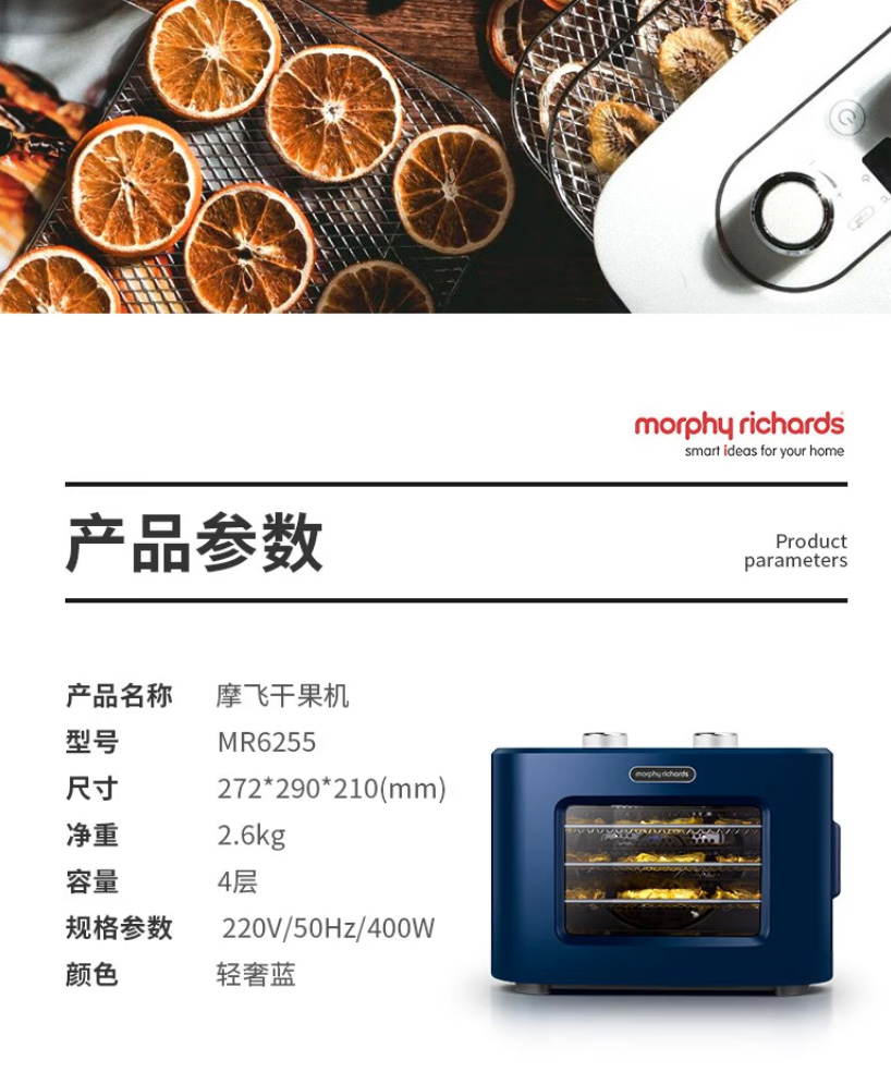 首页 >> 摩飞电器(Morphyrichards)干果机料理机风干果汁机家用水果蔬菜肉类脱水机干燥机 MR6255