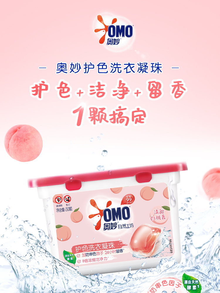 奥妙自然工坊护色洗衣凝珠 50颗 (400克清甜白桃香)