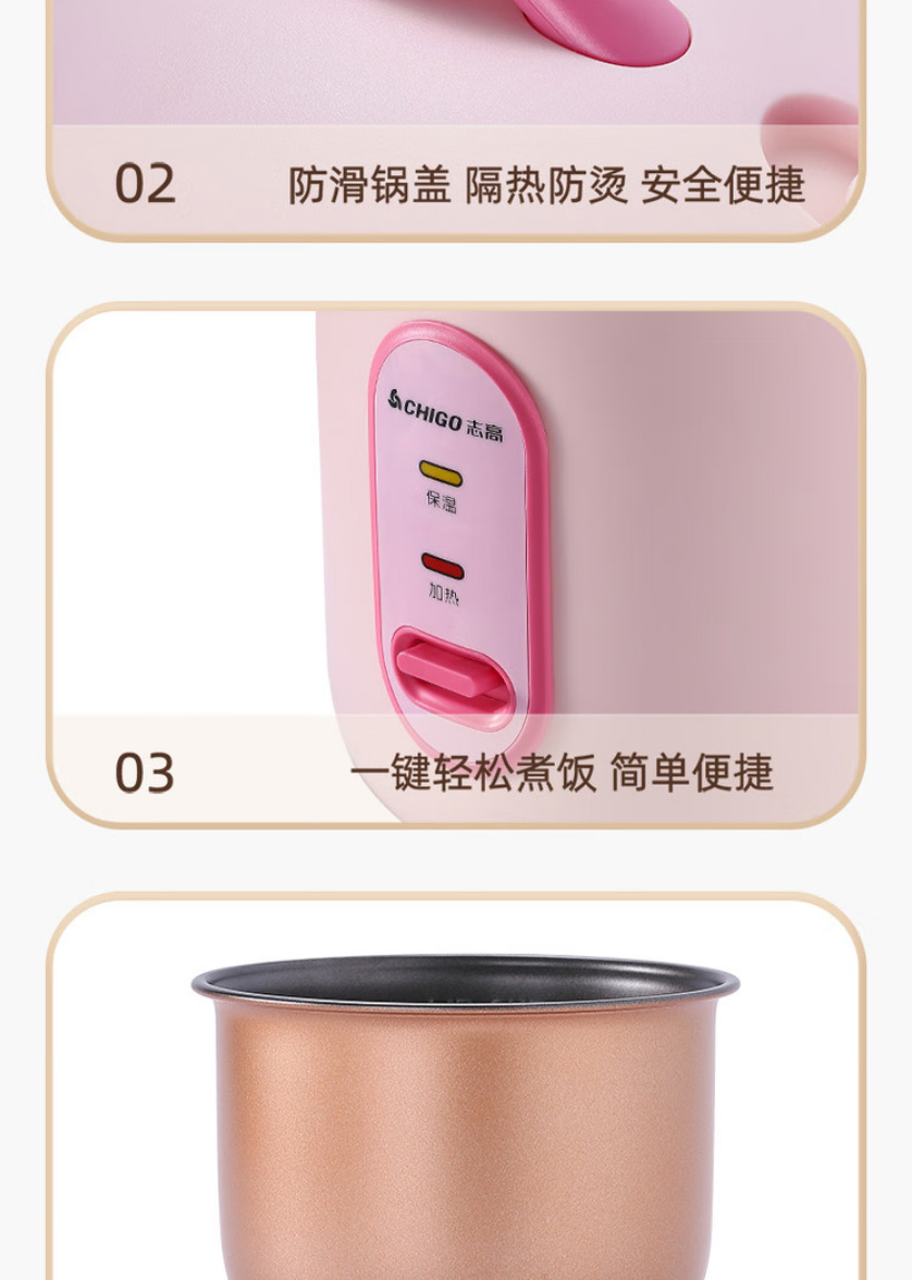 首页 >> 志高(CHIGO)电饭煲1.2L小型迷你电饭锅家用电饭锅煲小功率宿舍用1-2-3人 MN12-F