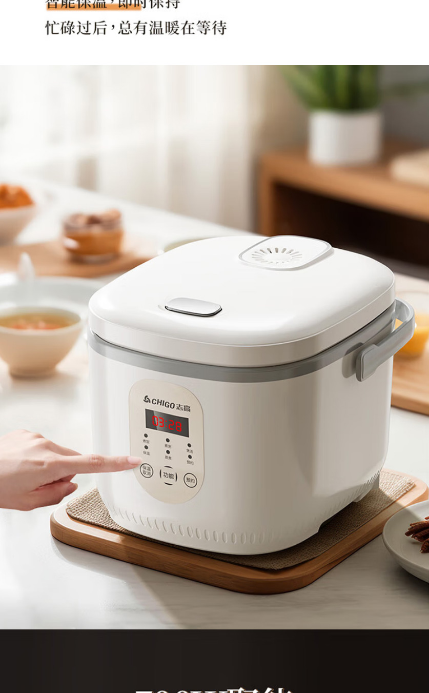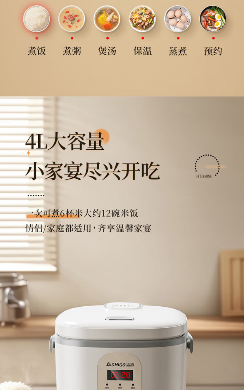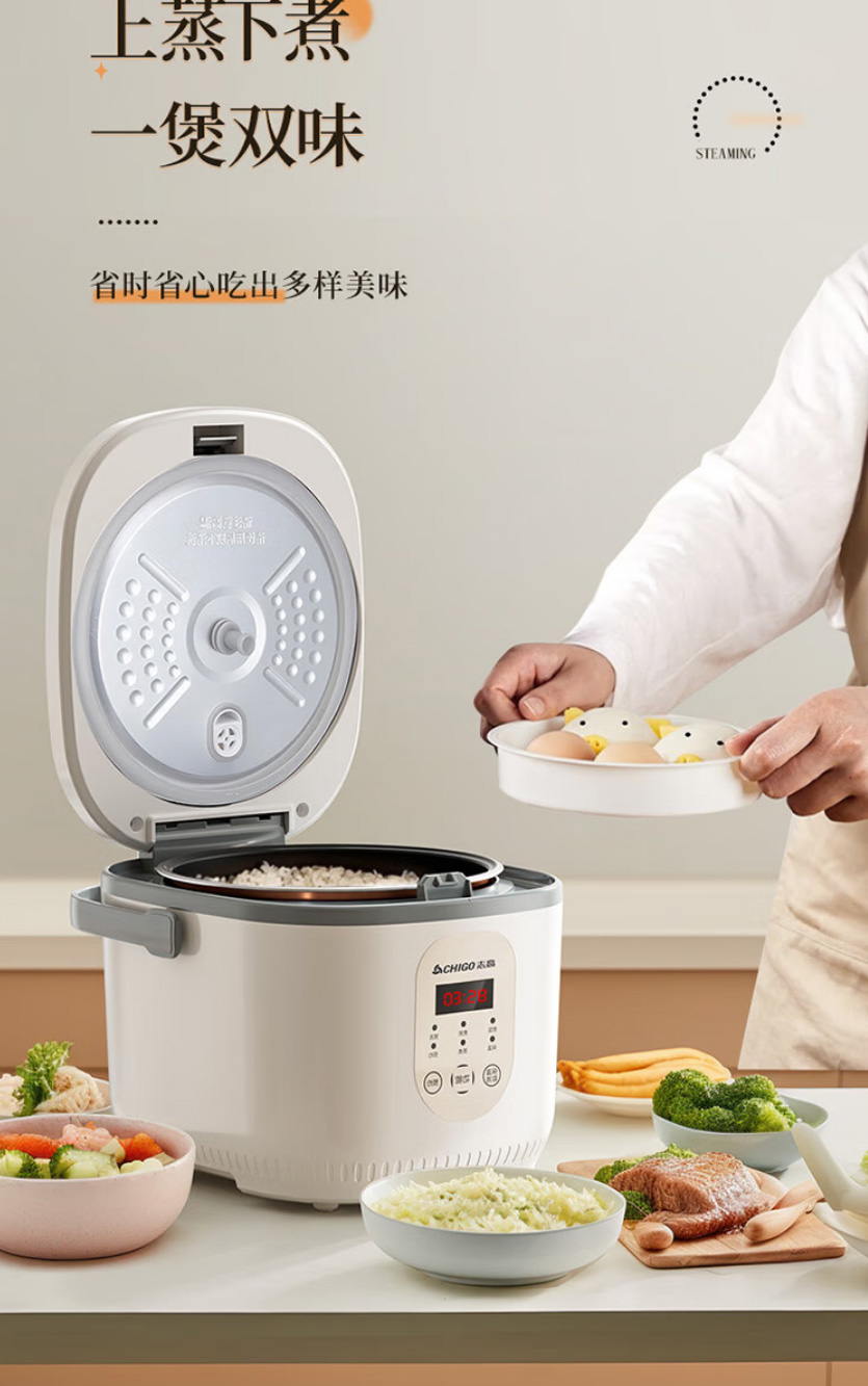 首页 >> 志高志高(CHIGO)电饭煲4L 家用电饭锅 24H智能预约蒸煮米饭锅 配蒸屉 FBD40-P