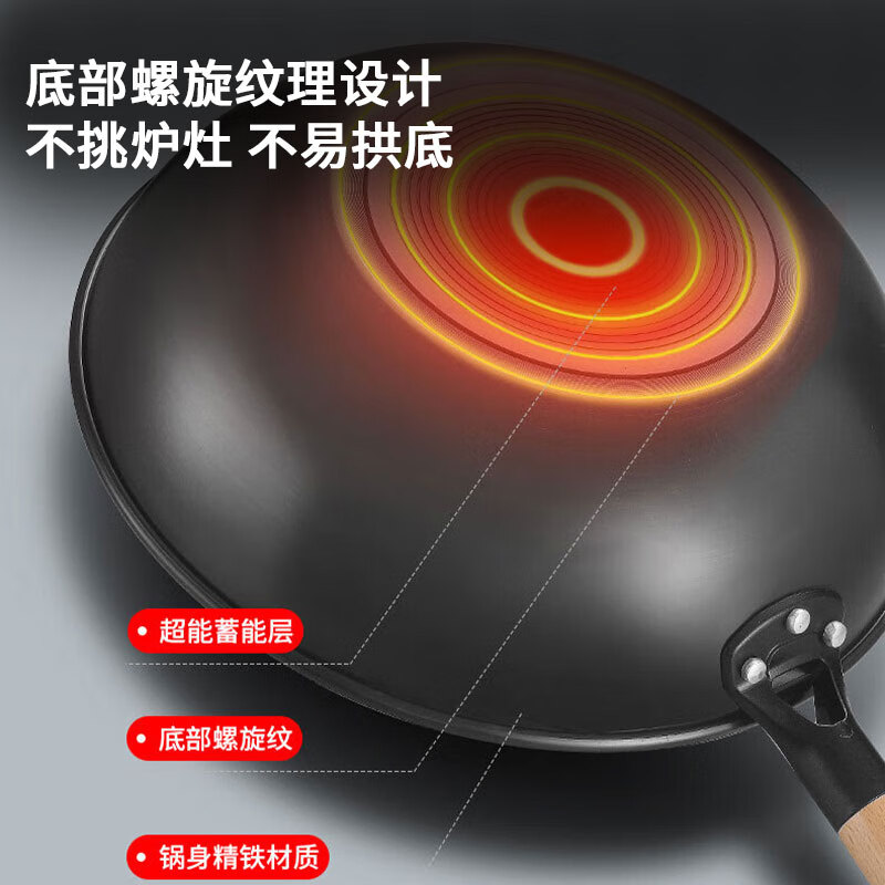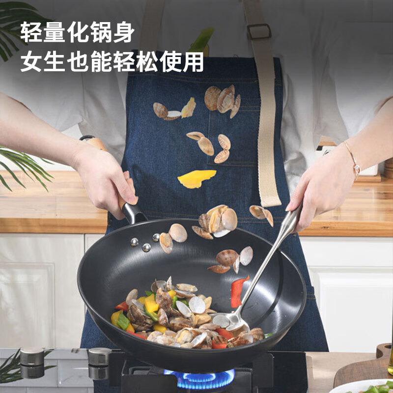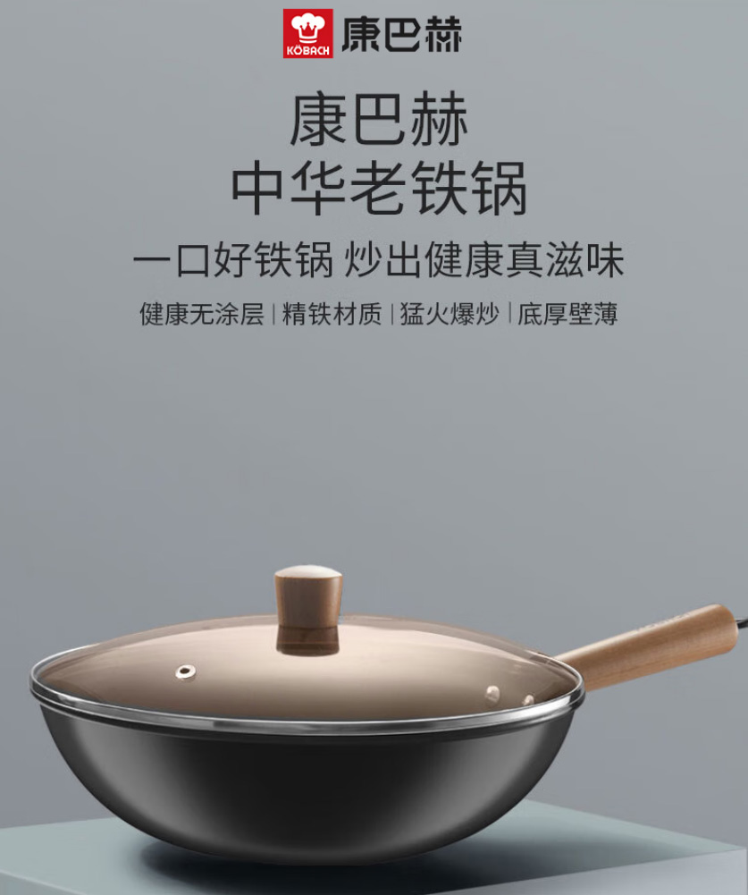 康巴赫老铁锅炒锅无涂层炒菜锅少油烟可爆炒燃气通用锅具30cm带盖CZH30A1