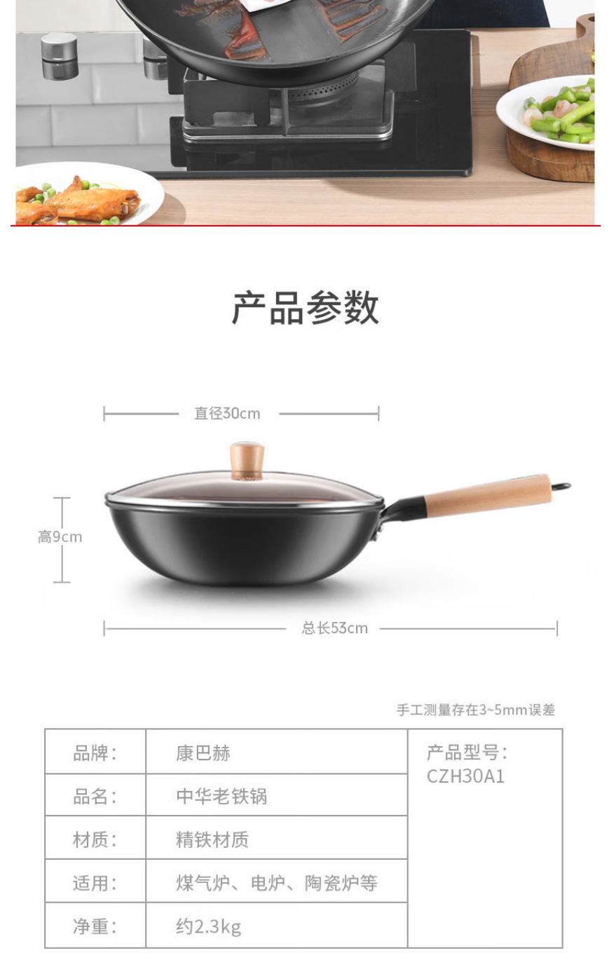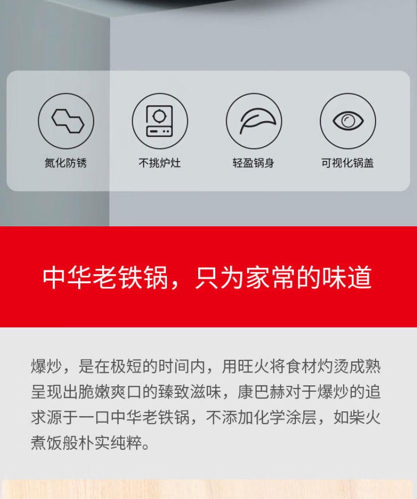 首页 >> 康巴赫老铁锅炒锅无涂层炒菜锅少油烟可爆炒燃气通用锅具30cm带盖CZH30A1