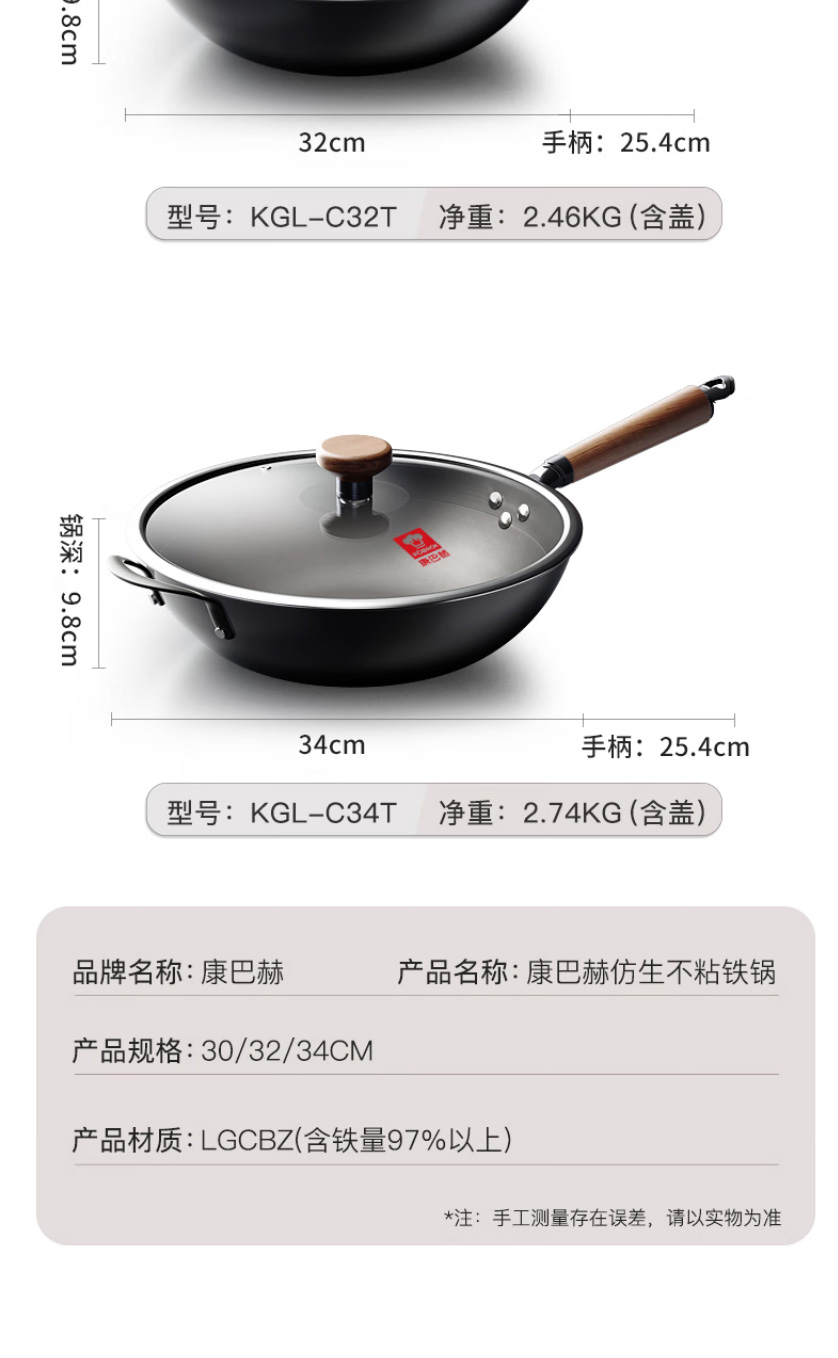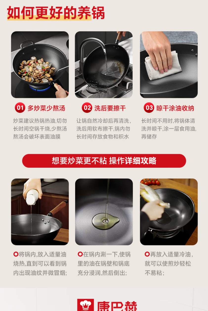首页 >> 康巴赫(KBH)炒锅铁锅不粘锅炒菜锅无涂层仿生不粘铁锅炉灶通用32cm KGL-C32T