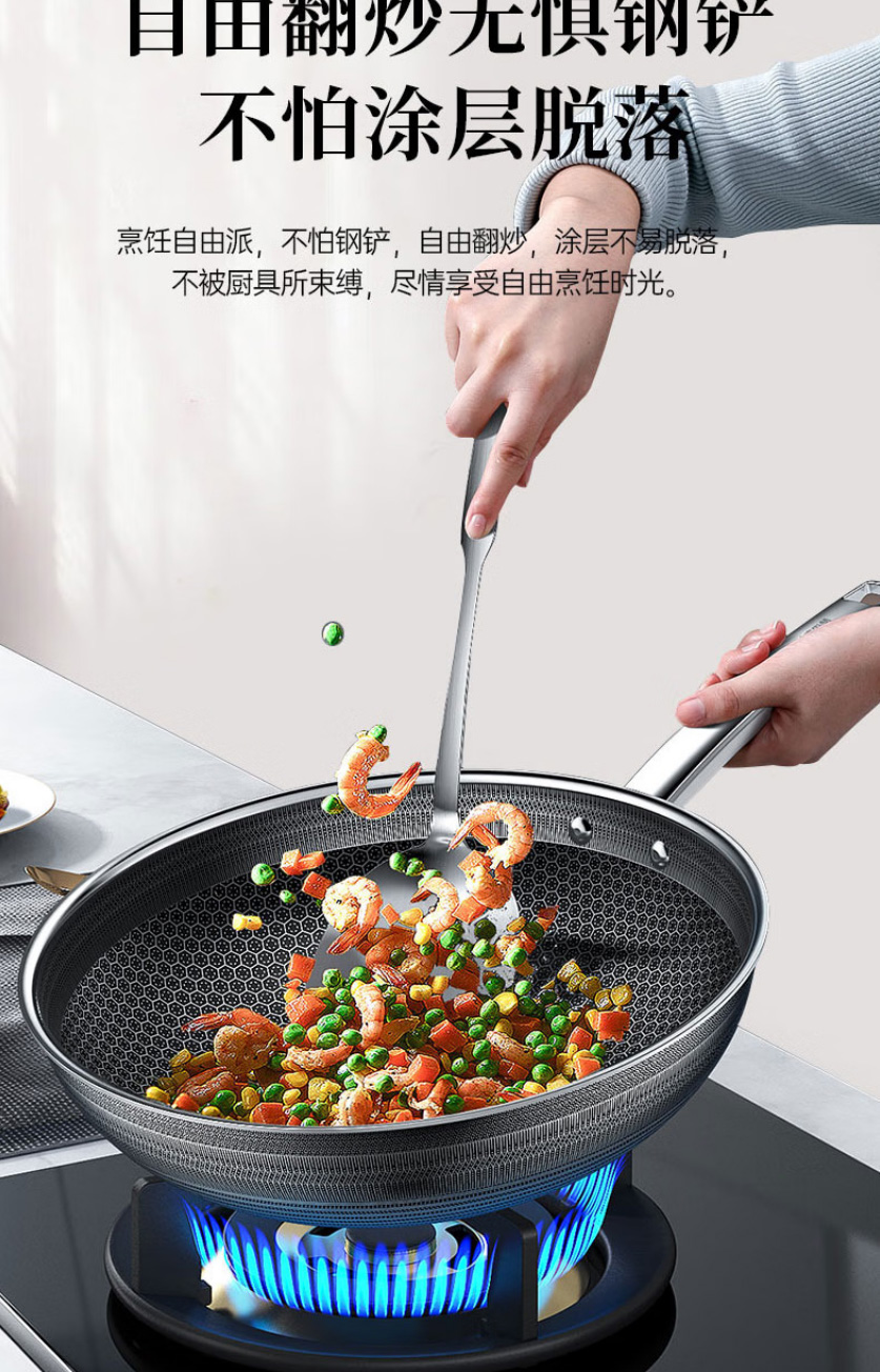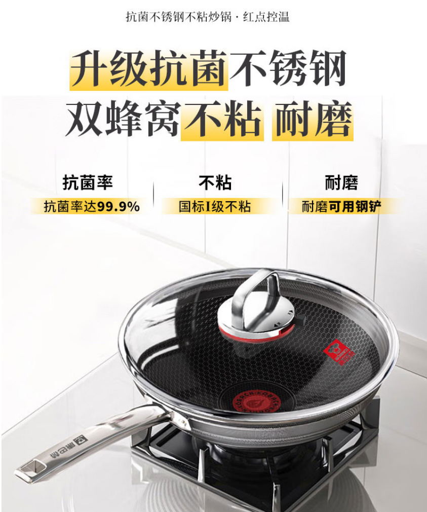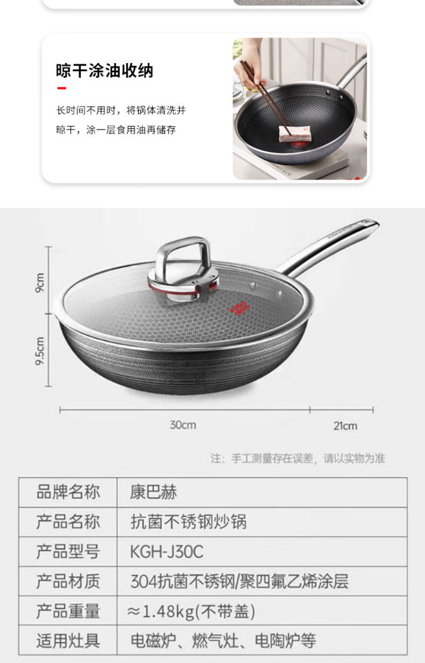 首页 >> 康巴赫炒锅不粘锅抗菌不锈钢炒菜锅煎平底锅30cm蜂窝锅电磁炉燃气灶通用 KGH-J30C