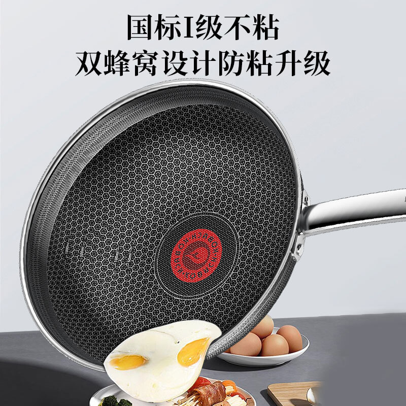 康巴赫炒锅不粘锅抗菌不锈钢炒菜锅煎平底锅30cm蜂窝锅电磁炉燃气灶通用 KGH-J30C