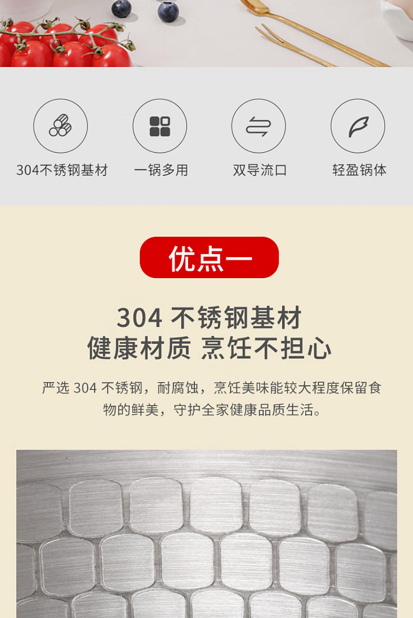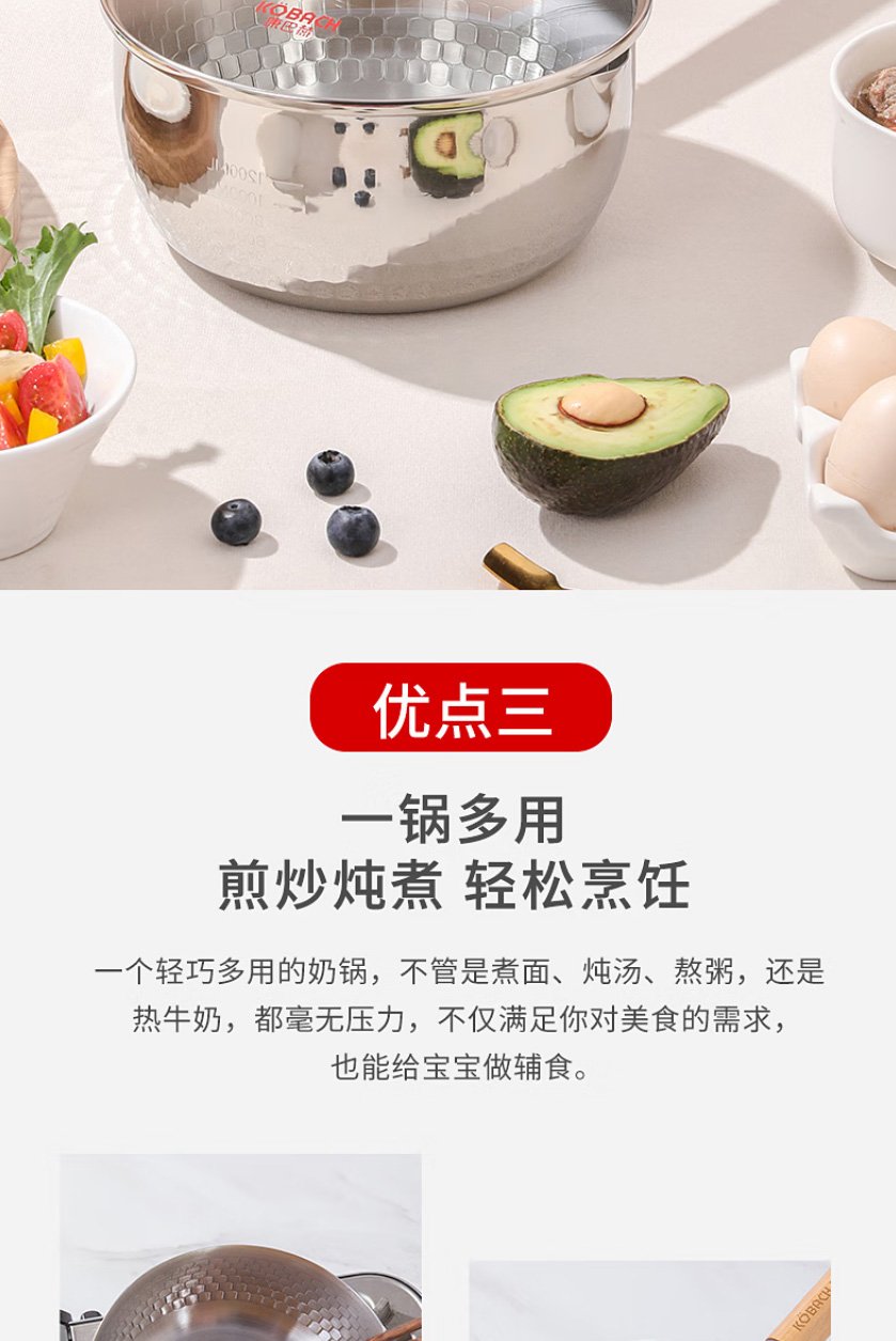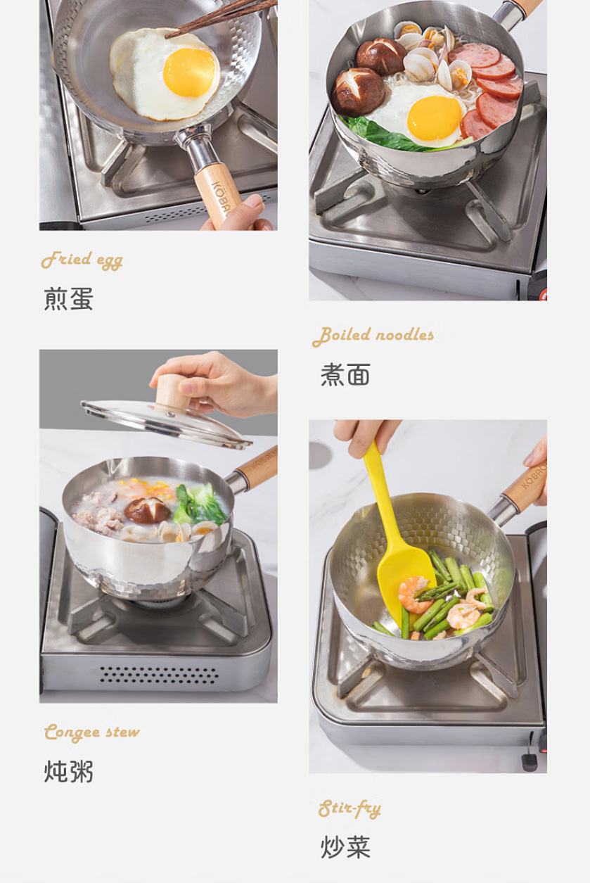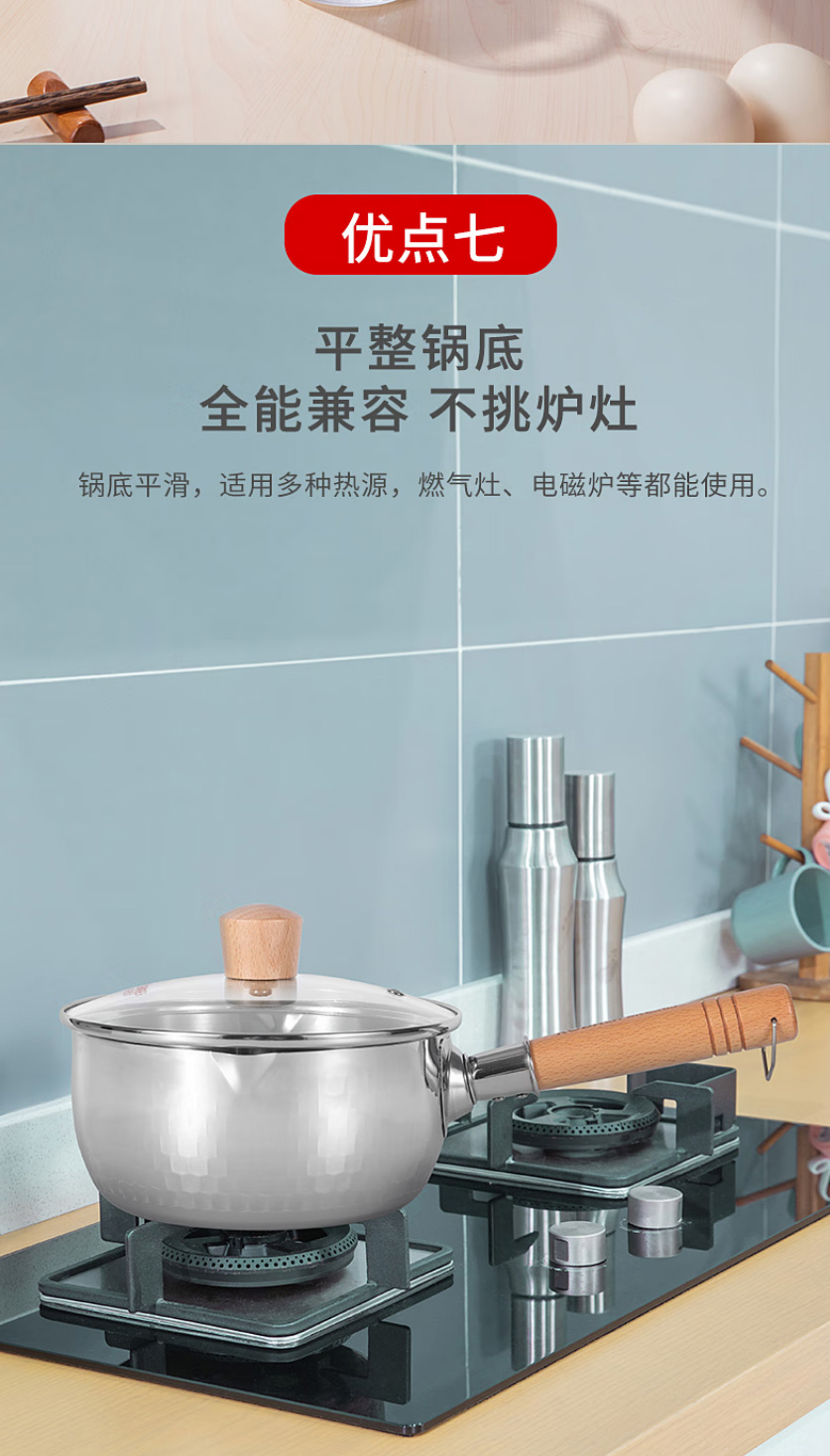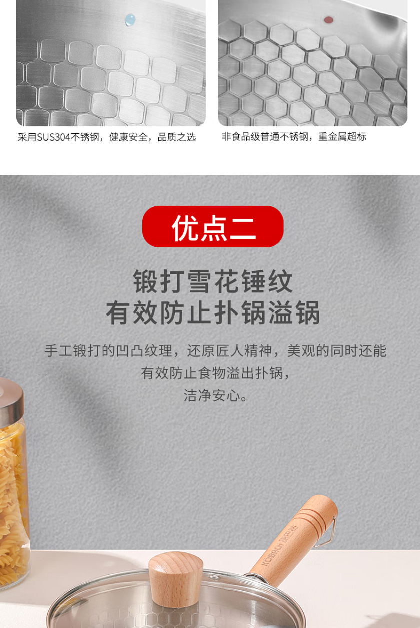 首页 >> 康巴赫304不锈钢不粘轻量雪平锅双导流口炖煮可悬挂带盖18cm不挑炉灶 KGJ-X18W