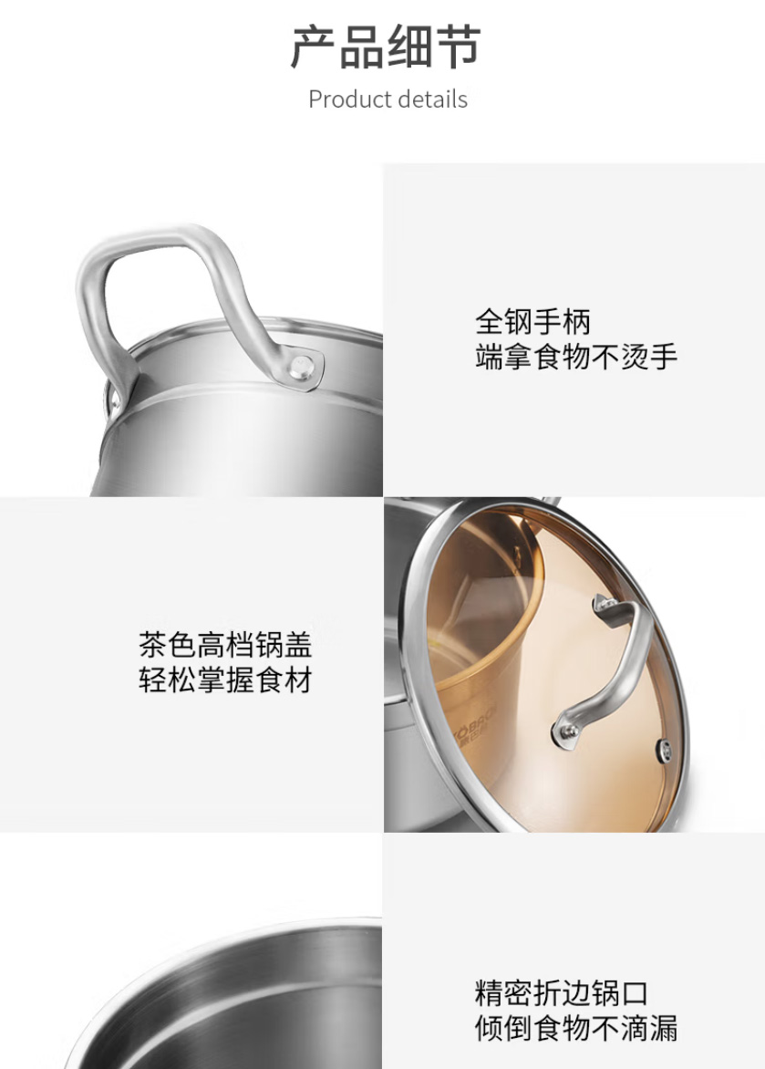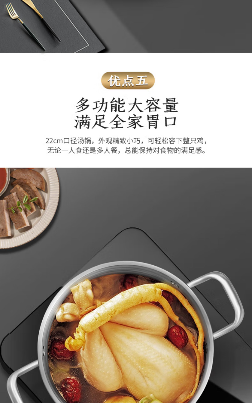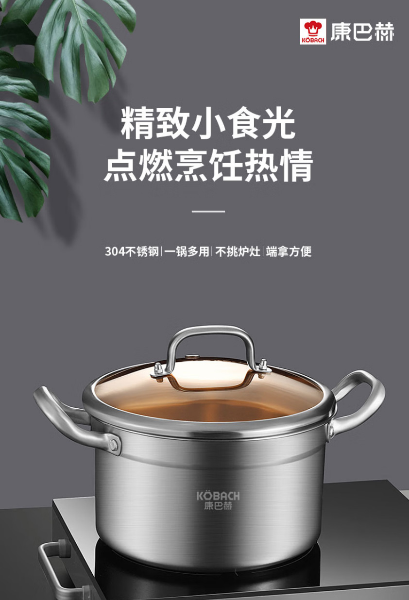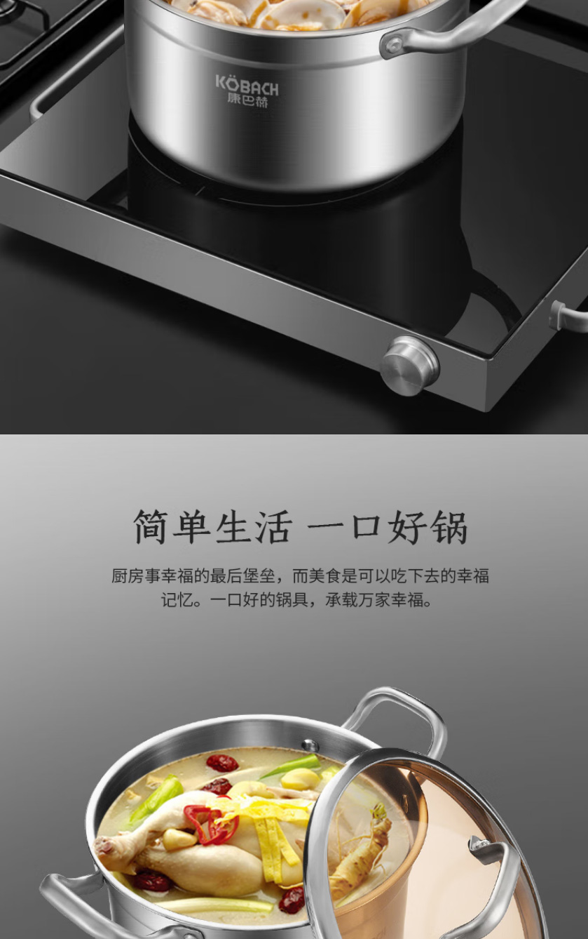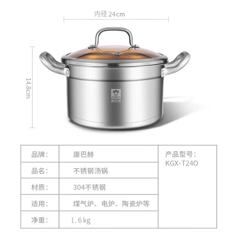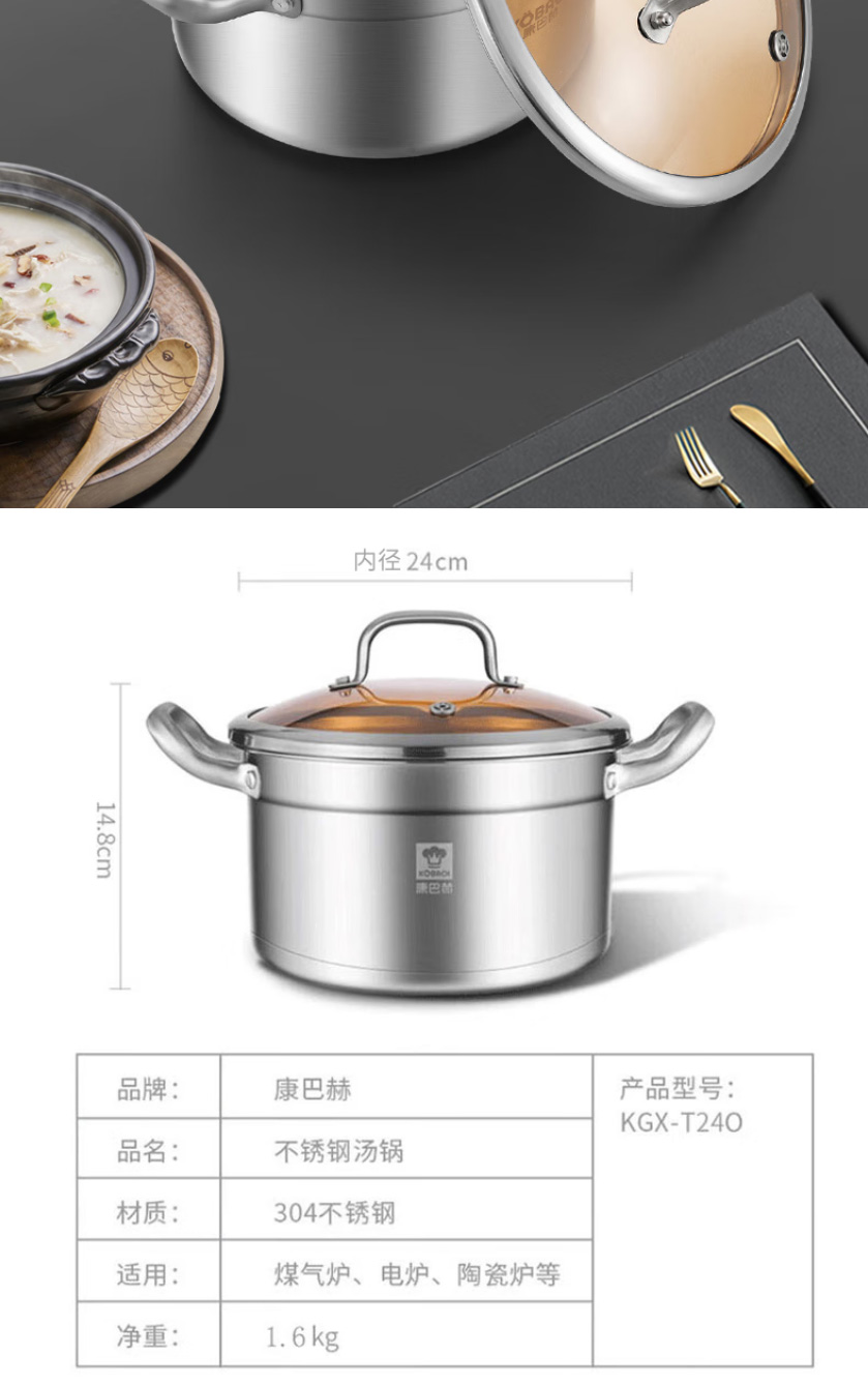首页 >> 康巴赫汤锅304不锈钢煲汤锅双耳无涂层炖锅24cm电磁炉燃气灶通用KGX-T240