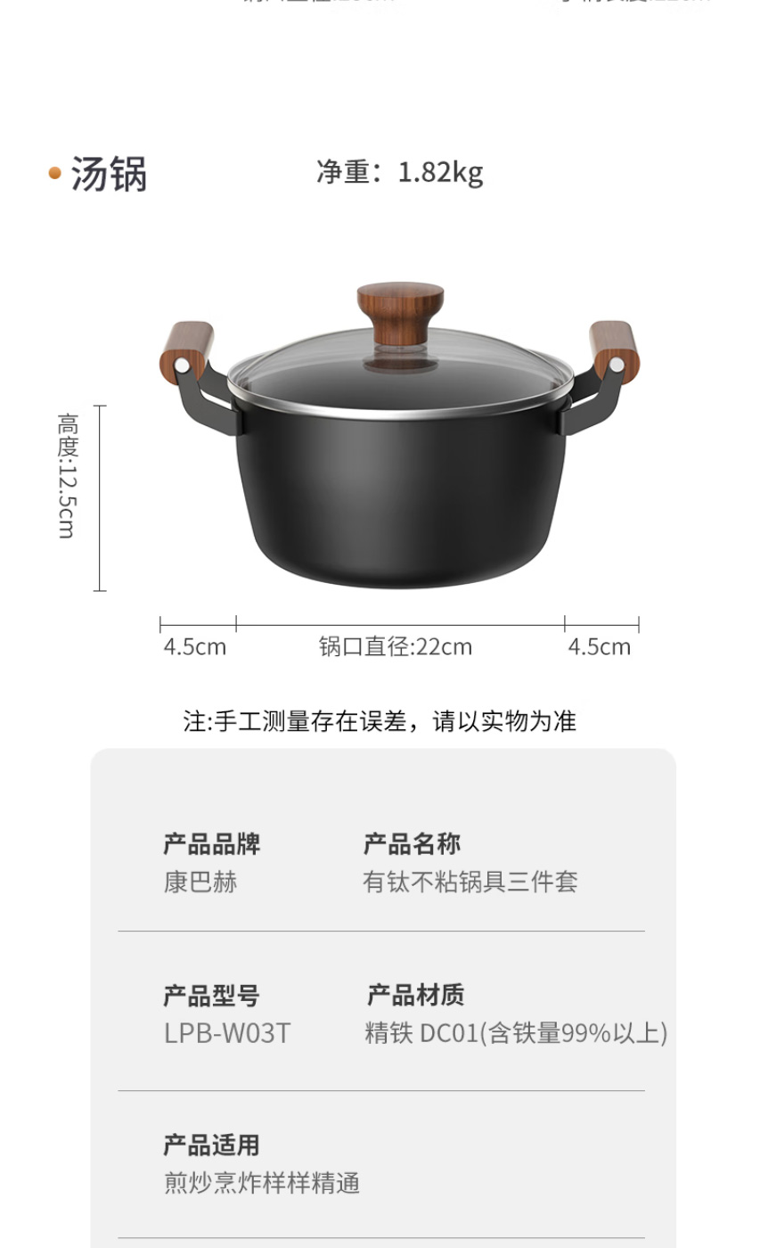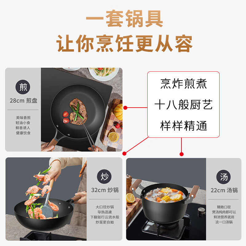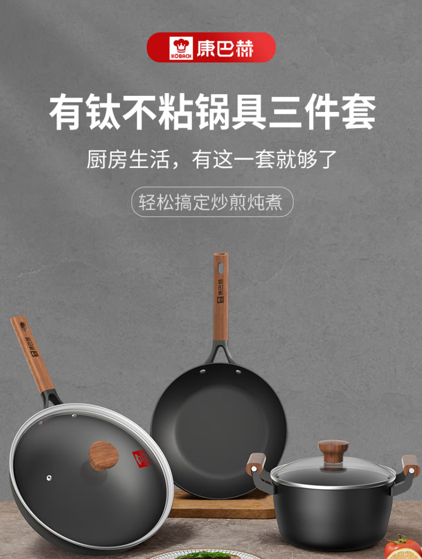 首页 >> 康巴赫炒锅 锅具套装有钛不粘炒菜锅锅汤锅煎锅三件套装(32cm炒锅+26cm煎锅+22cm汤锅)LPB-W03T