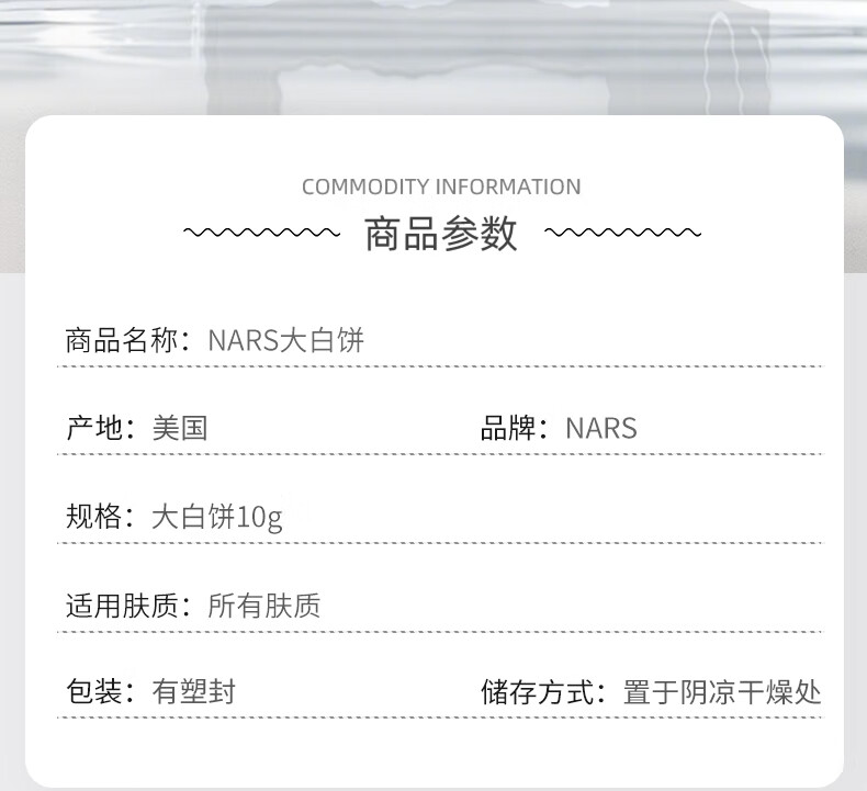 nars/纳斯 NARS流光美肌轻透蜜粉饼 10g(含粉扑)定妆大白饼 不飞粉